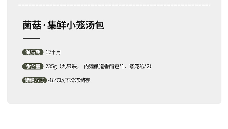 商品名称:(世星阳光)锋味派菌菇集鲜小笼汤包235g*6蒸包集鲜早餐灌汤小包子鲜肉包儿童早茶菌菇味