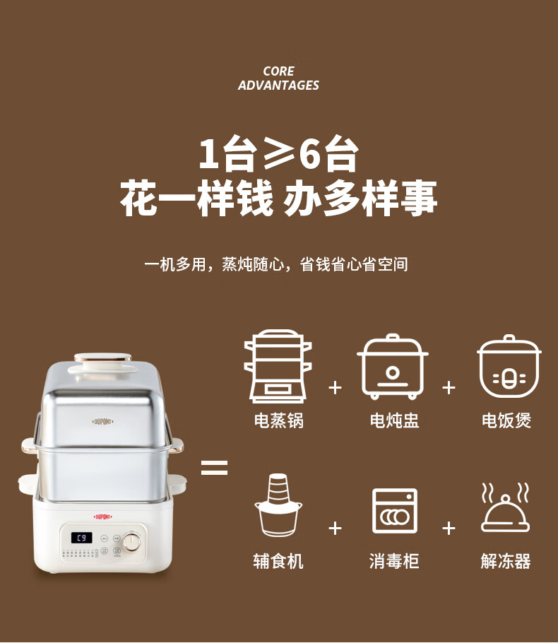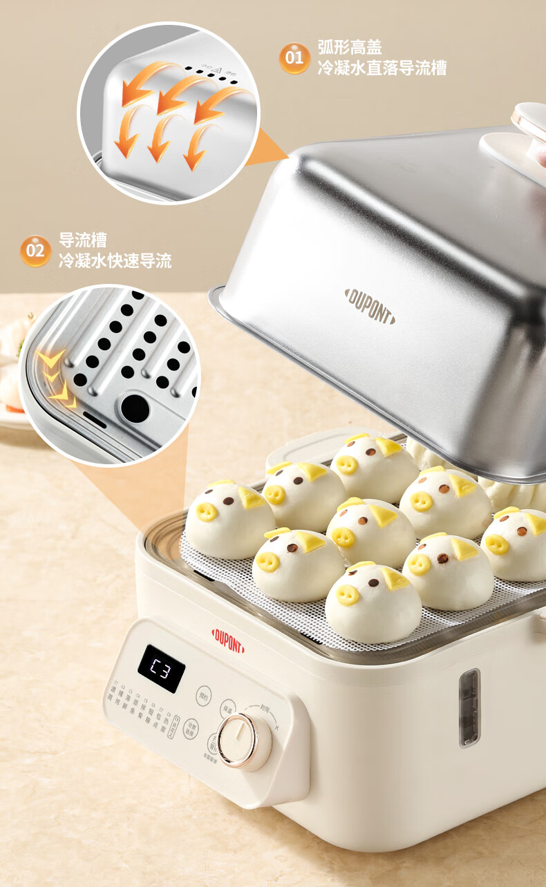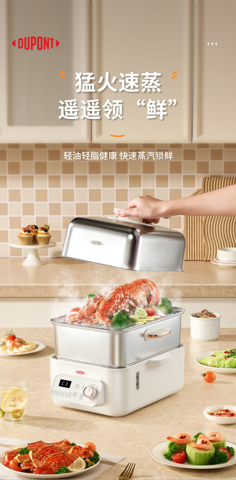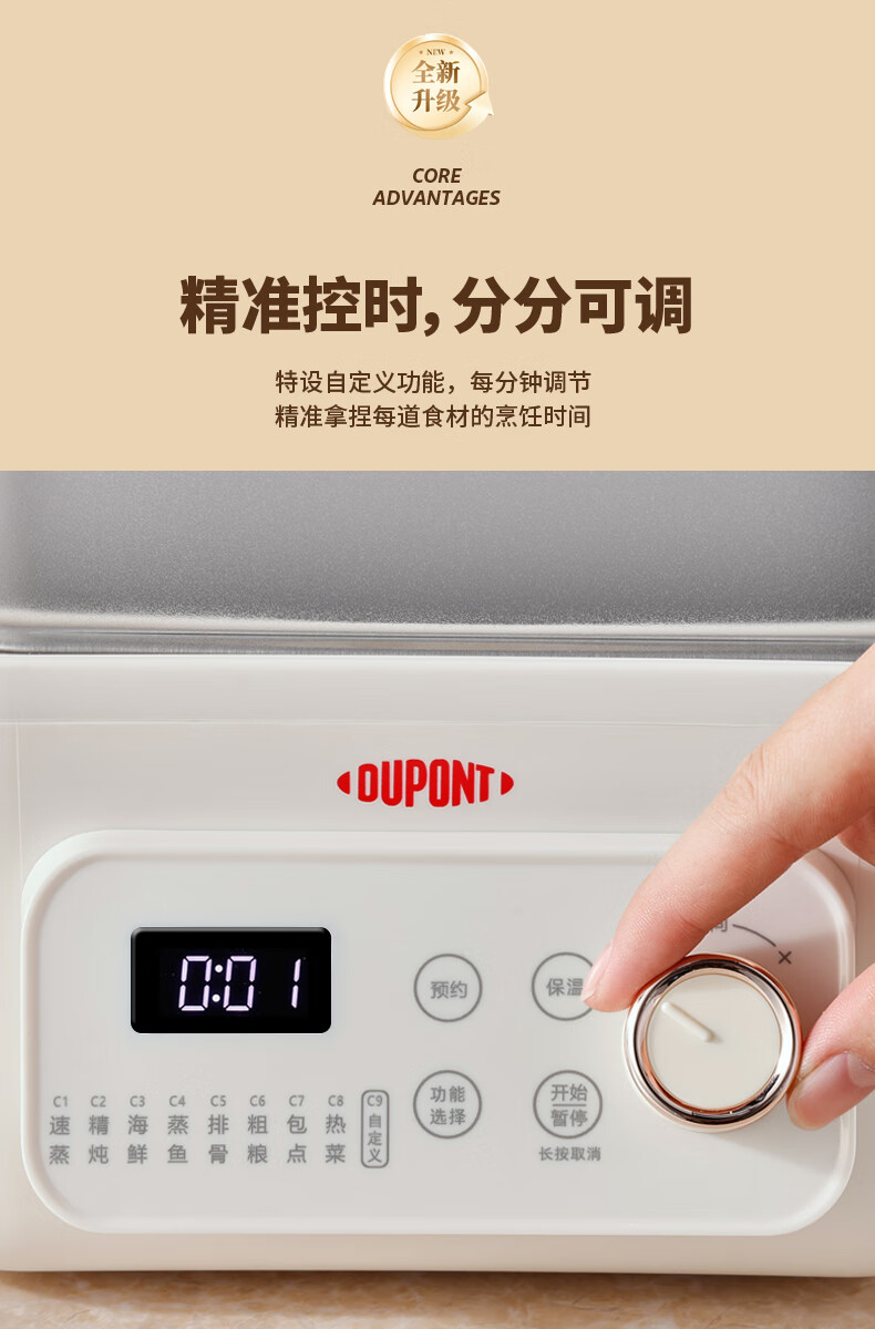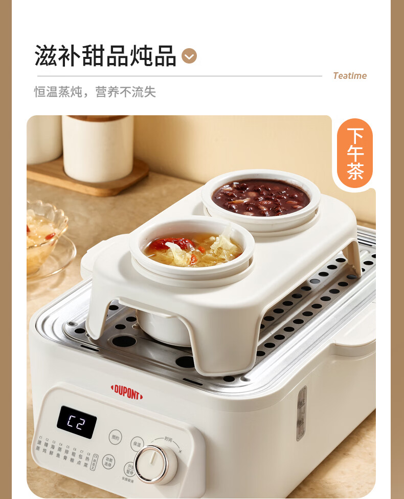 商品名称:(巨邦佑)BJ+杜邦不锈钢多功能电蒸锅DZG-010 2层/3层 带炖盅定制鱼盘 大容量多功能蒸汽锅自动断电智能预约快速蒸汽0涂层精钢隔水炖