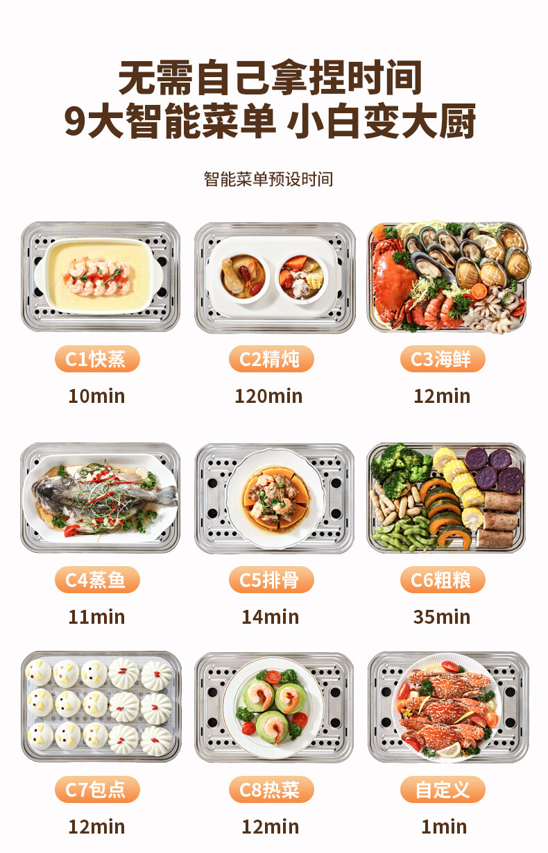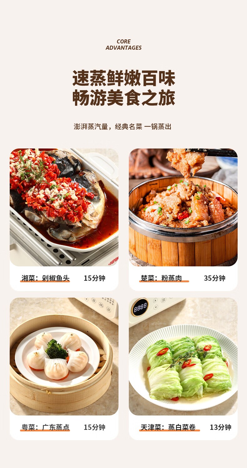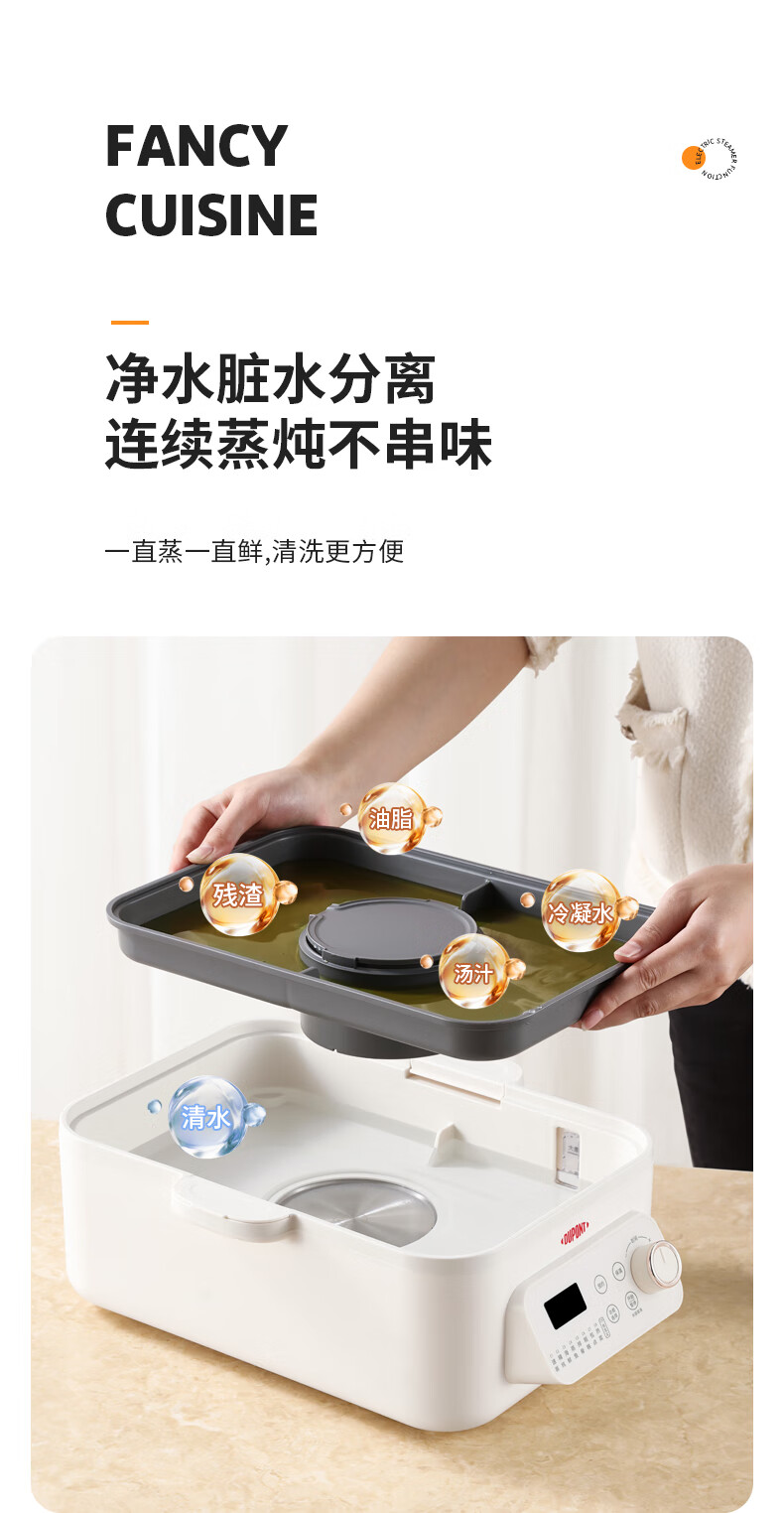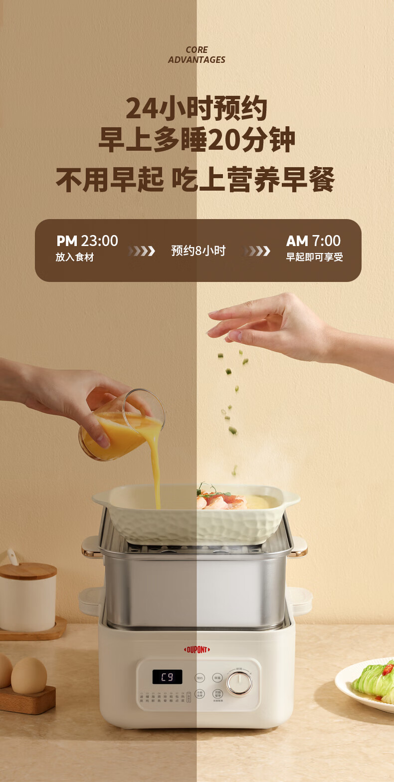商品名称:(巨邦佑)BJ+杜邦不锈钢多功能电蒸锅DZG-010 2层/3层 带炖盅定制鱼盘 大容量多功能蒸汽锅自动断电智能预约快速蒸汽0涂层精钢隔水炖