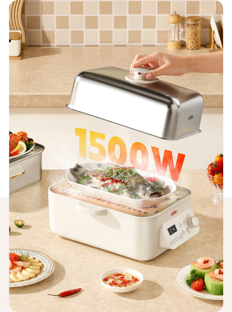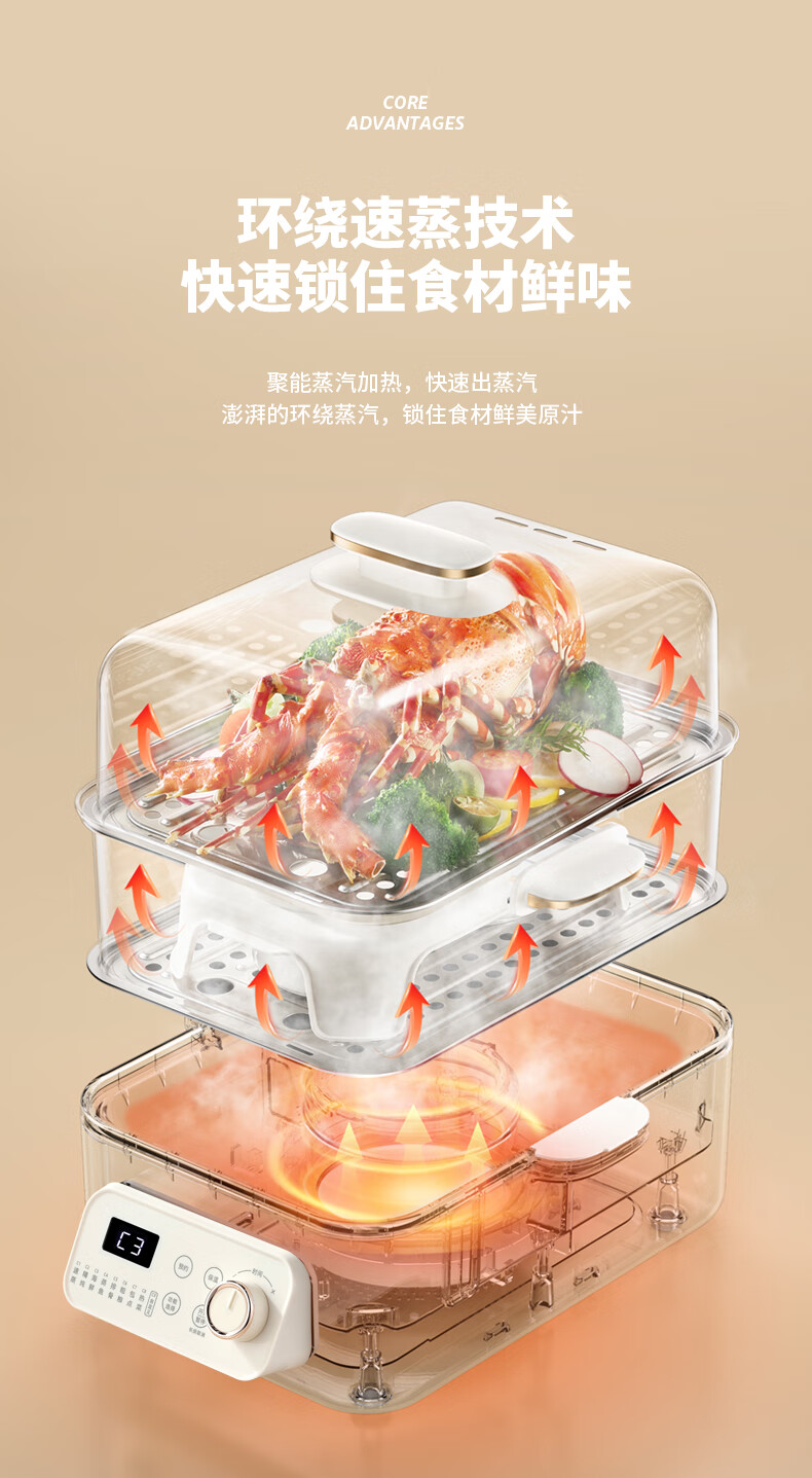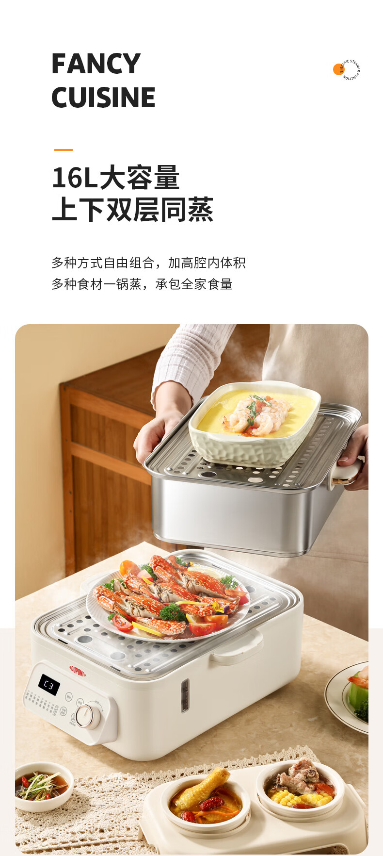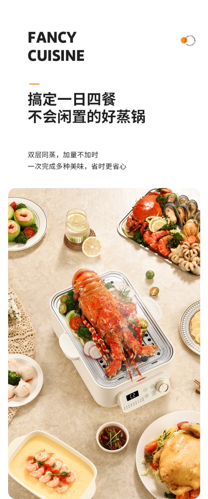 (巨邦佑)BJ+杜邦不锈钢多功能电蒸锅DZG-010 2层/3层 带炖盅定制鱼盘 大容量多功能蒸汽锅自动断电智能预约快速蒸汽0涂层精钢隔水炖