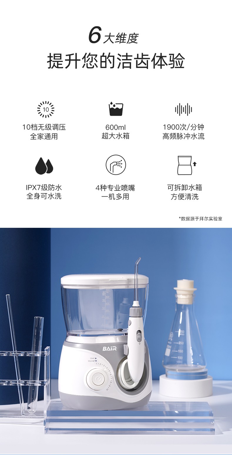 (世星阳光) 拜尔家用式冲牙器H6 600ML大水箱 台式家用冲牙器插电式洗牙器家庭洁牙机水牙线牙齿清洁器