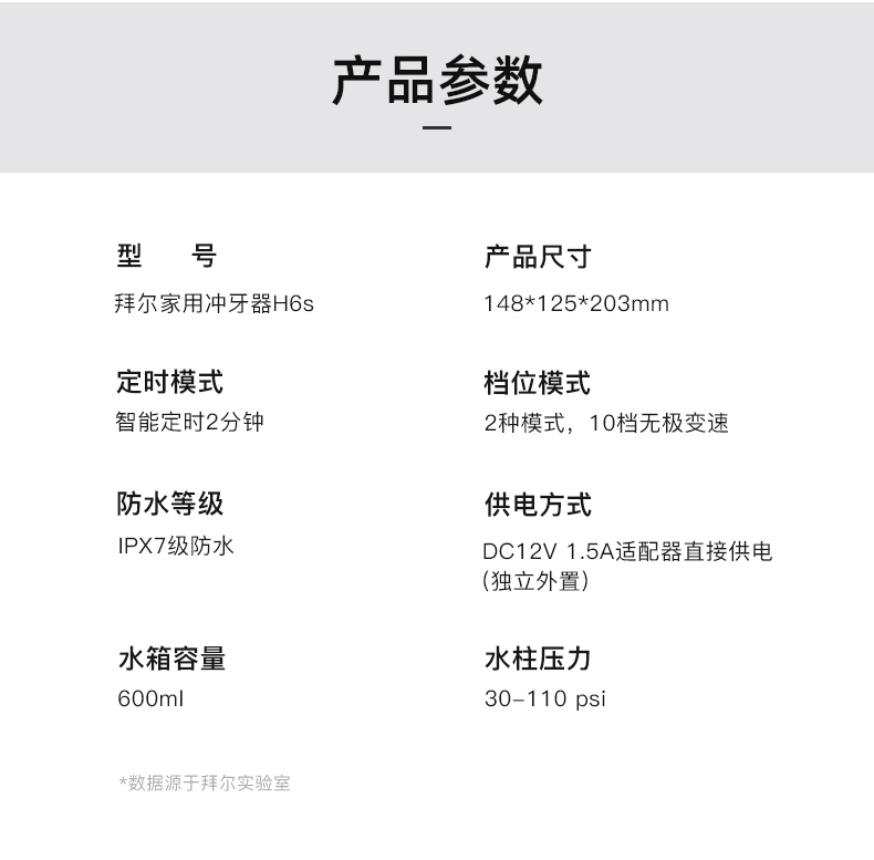 商品名称:(世星阳光) 拜尔家用式冲牙器H6 600ML大水箱 台式家用冲牙器插电式洗牙器家庭洁牙机水牙线牙齿清洁器