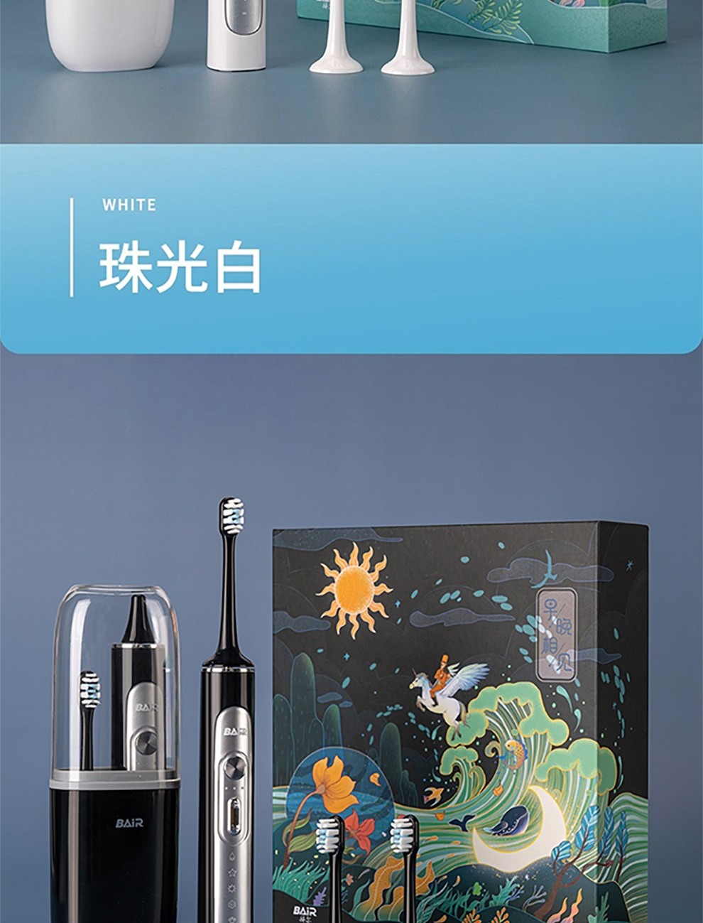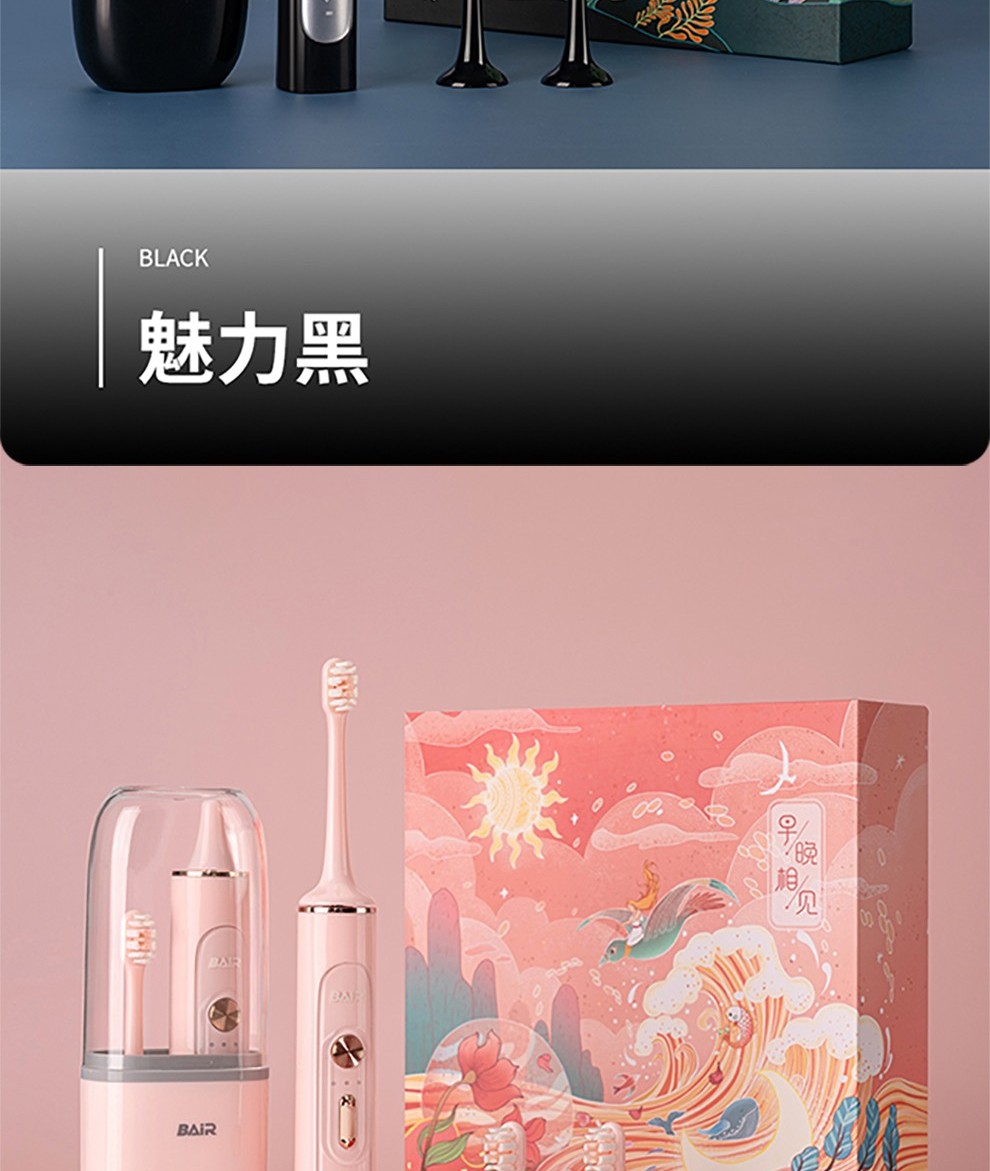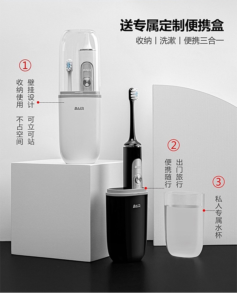 (世星阳光) 拜尔 声波式锂电池充电式成人电动牙刷 G201 (原配刷头6只、旅行盒一个)电动牙刷声波成人学生情侣自动震动男士女送男朋友礼盒装