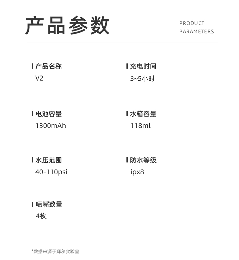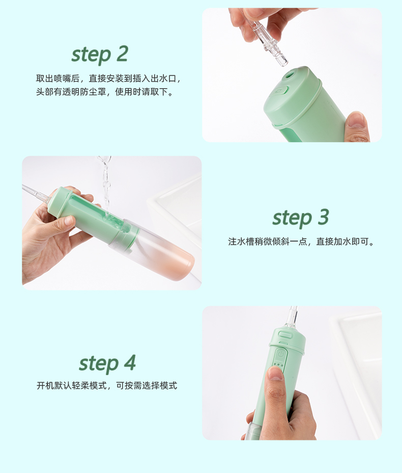 商品名称:(世星阳光) 拜尔小不点冲洗器 V2(4枚原装喷嘴,折叠后约12厘米)便携式电动水牙线正畸洁牙洗牙器
