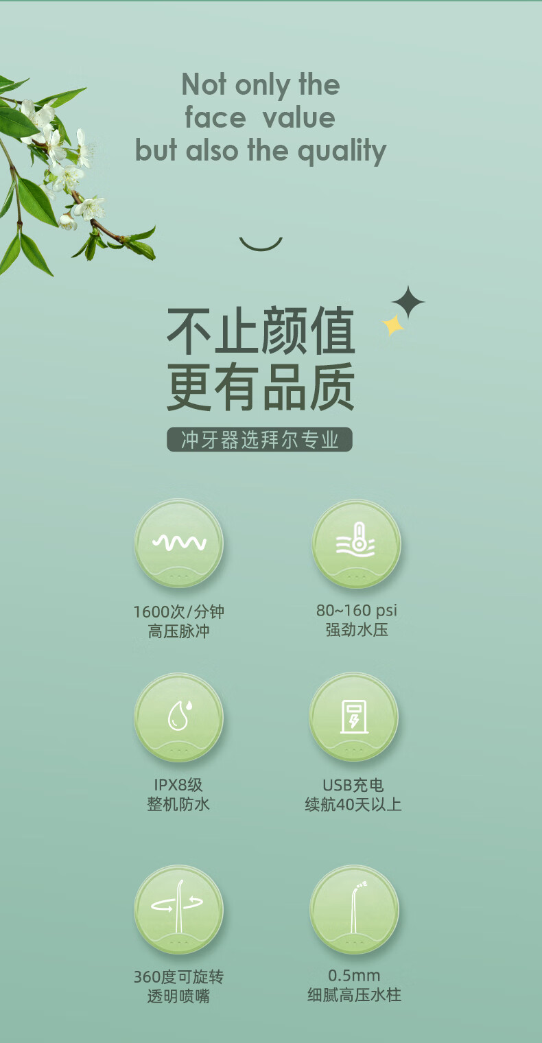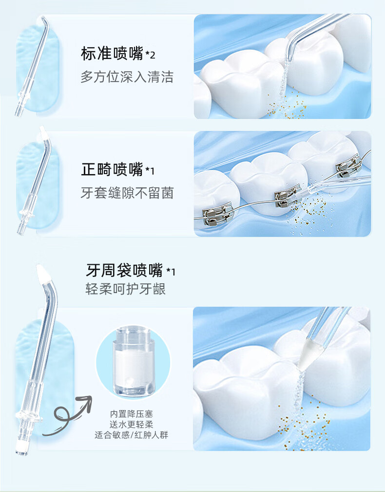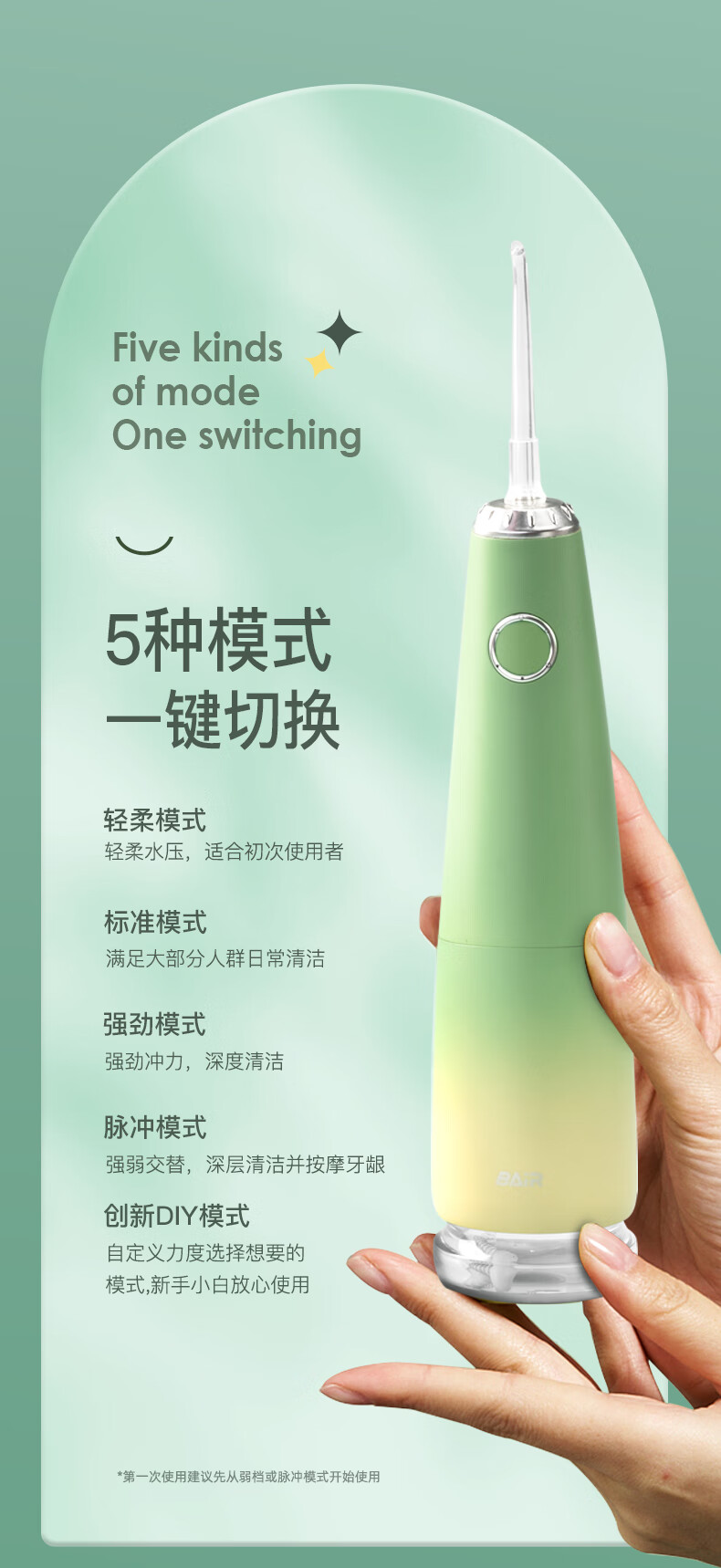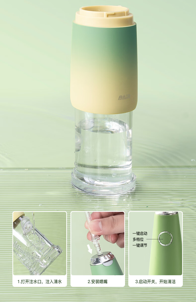 商品名称:(世星阳光) 拜尔小米蕉便携冲牙器M9 (主机+充电线+标准喷嘴*2正畸喷嘴牙周袋喷嘴)伸缩抽拉式大水箱水牙线旅行家用正畸专用口腔牙齿清洁洗牙神器