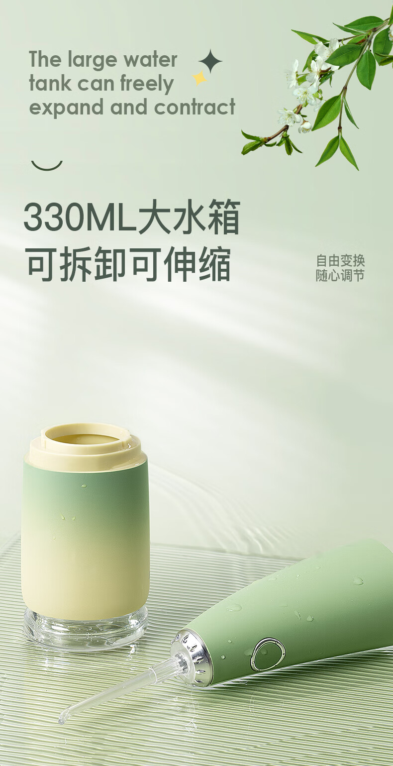 (世星阳光) 拜尔小米蕉便携冲牙器M9 (主机+充电线+标准喷嘴*2正畸喷嘴牙周袋喷嘴)伸缩抽拉式大水箱水牙线旅行家用正畸专用口腔牙齿清洁洗牙神器