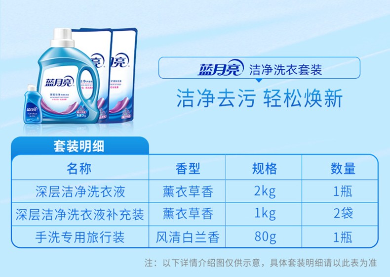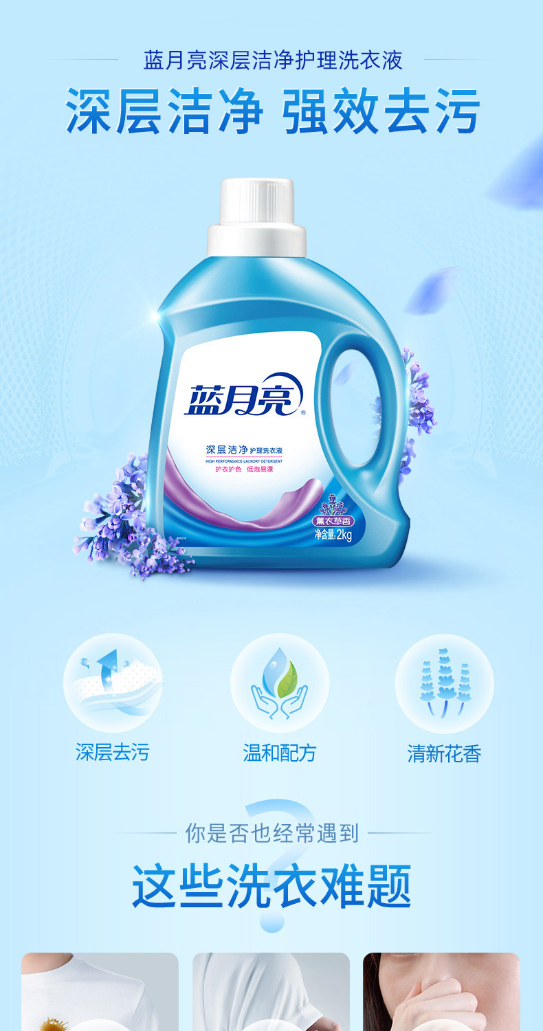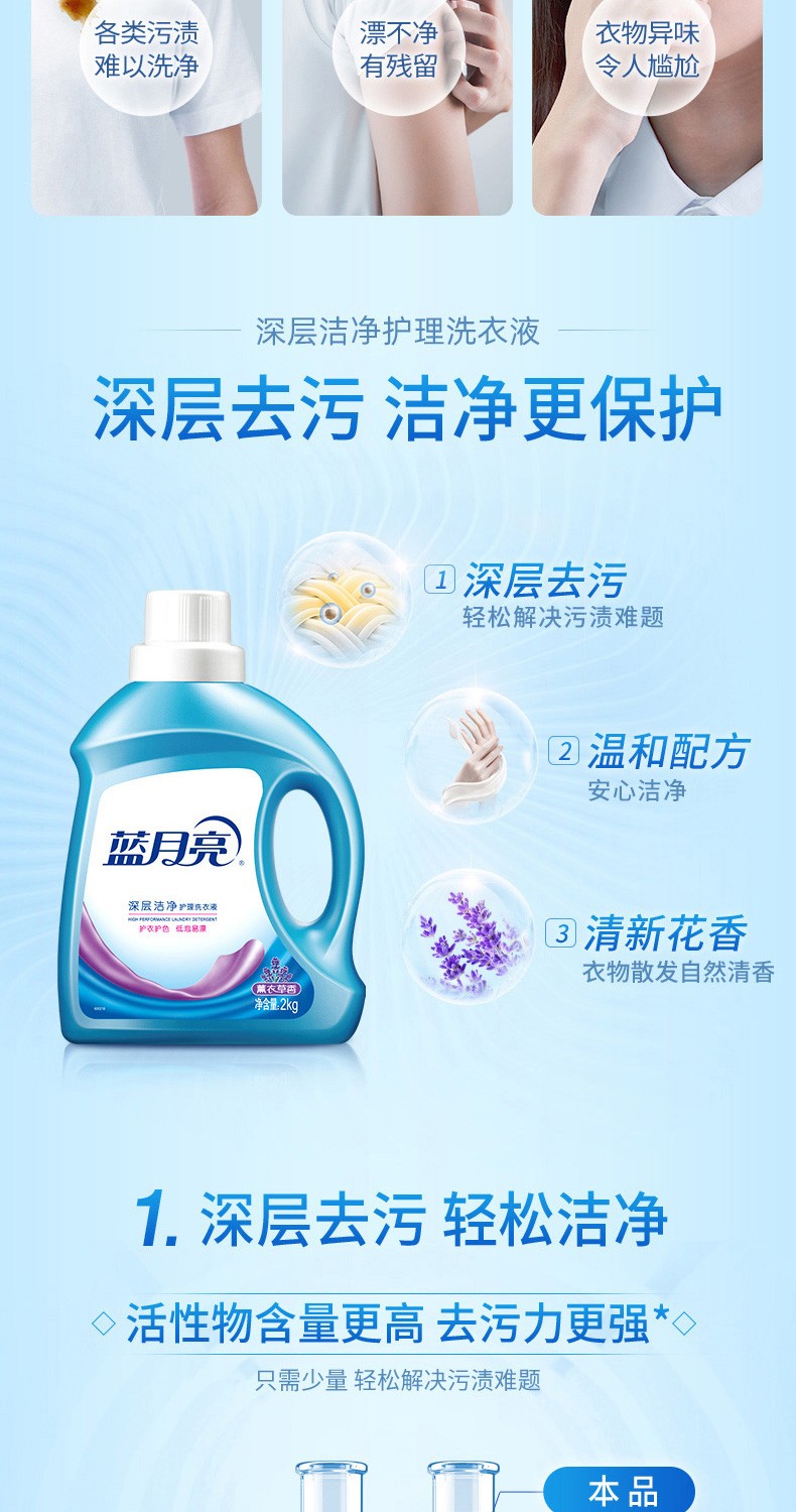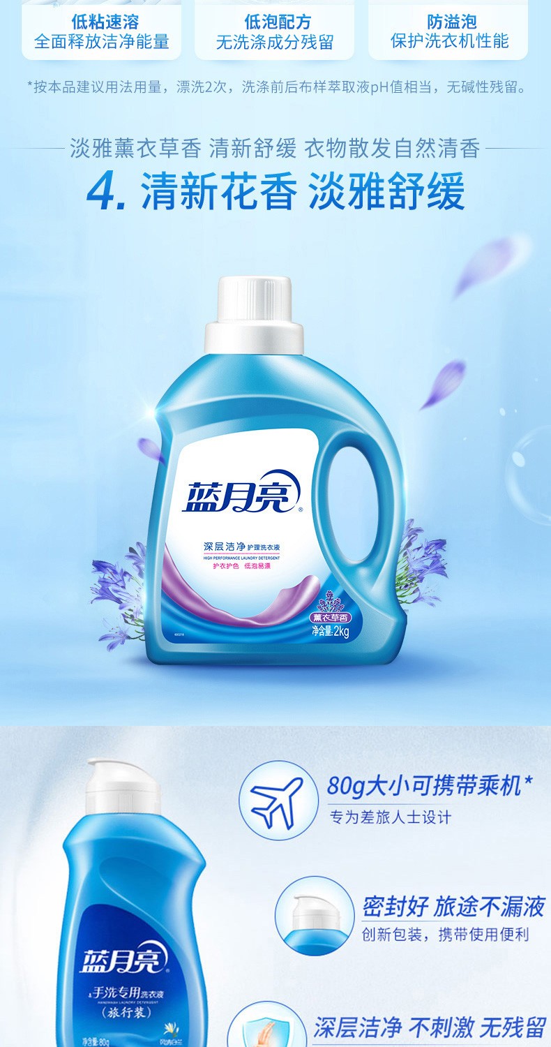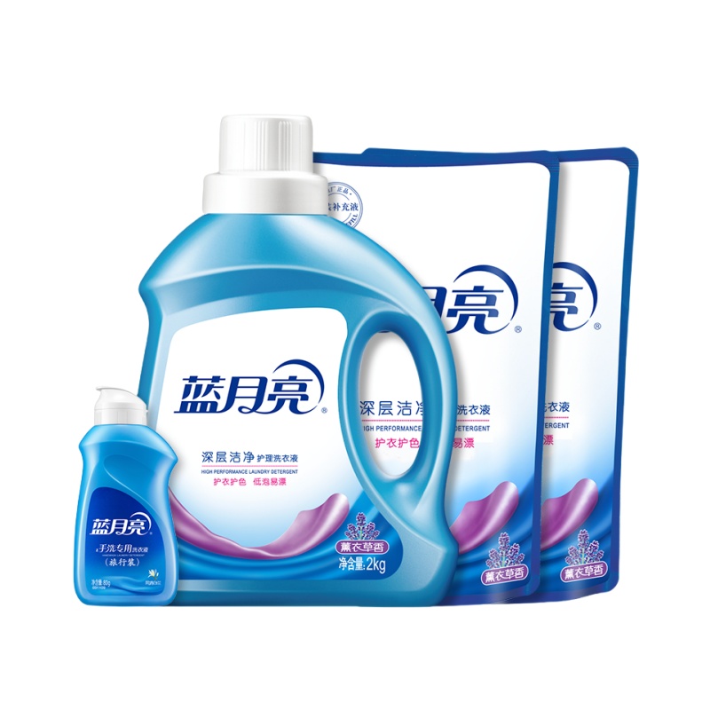 商品名称:(世星阳光) 蓝月亮洗衣液清洗剂 机洗精选深层洁净(薰衣草)洁净洗衣液2kg+1kg(补充袋)*2(含1瓶80g旅行装)