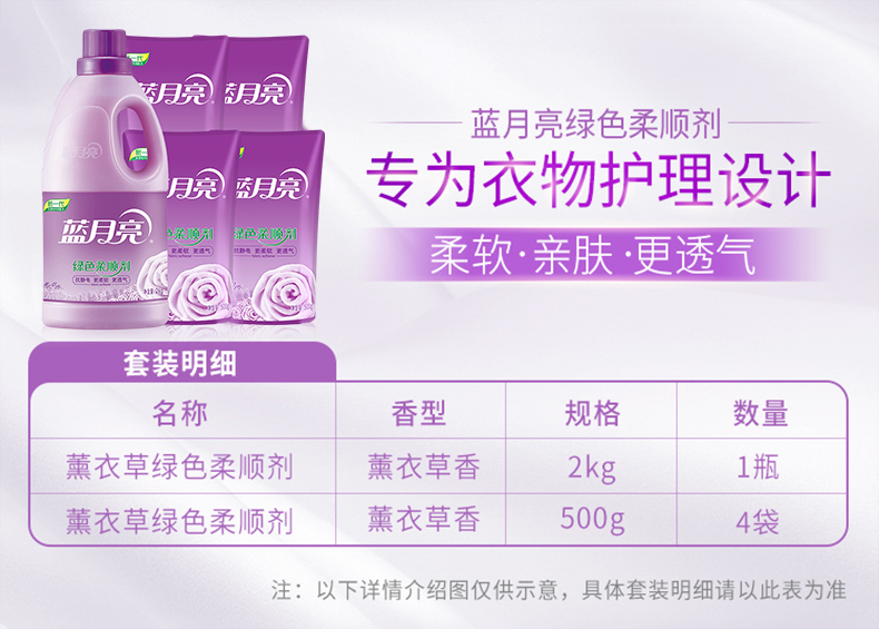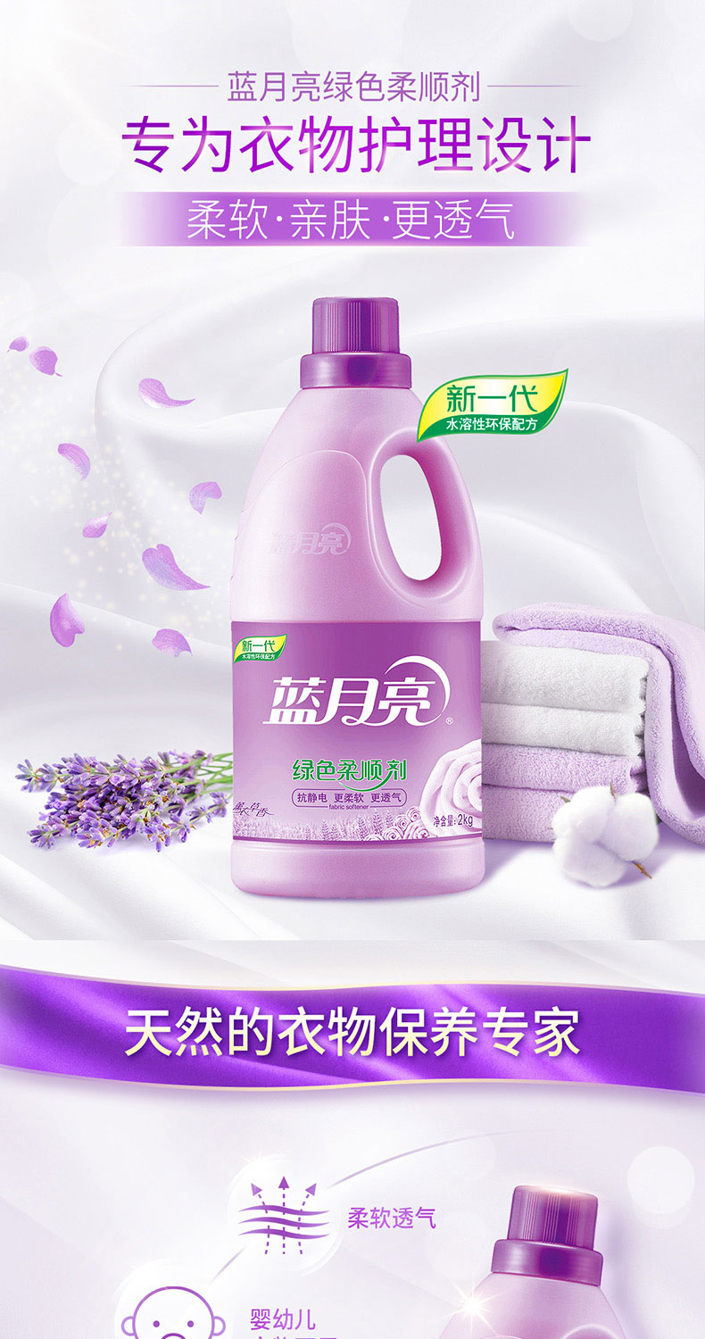商品名称:(世星阳光) 蓝月亮衣物柔顺精选(薰衣草香)柔顺剂2kg+500g袋×4