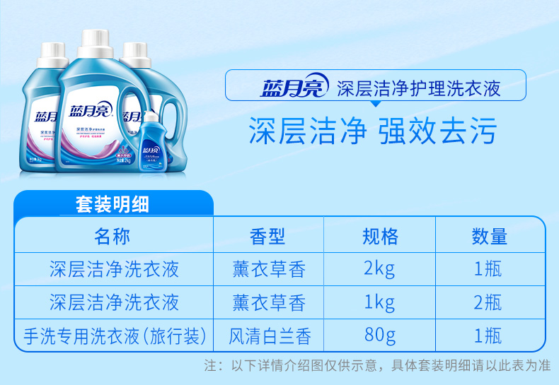 商品名称:(世星阳光) 蓝月亮薰衣草洁净洗衣液2kg+薰衣草洁净洗衣液1kg×2+白兰旅行装80g