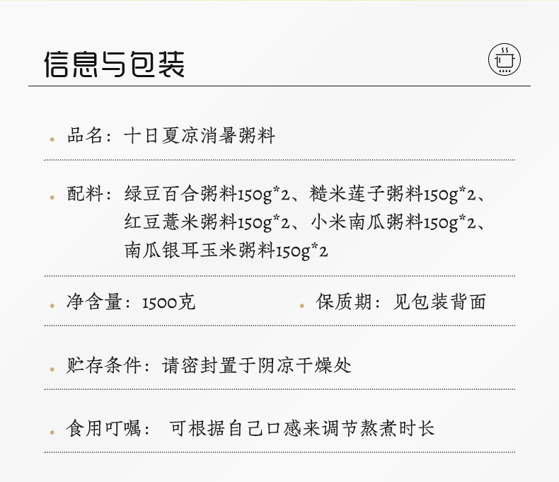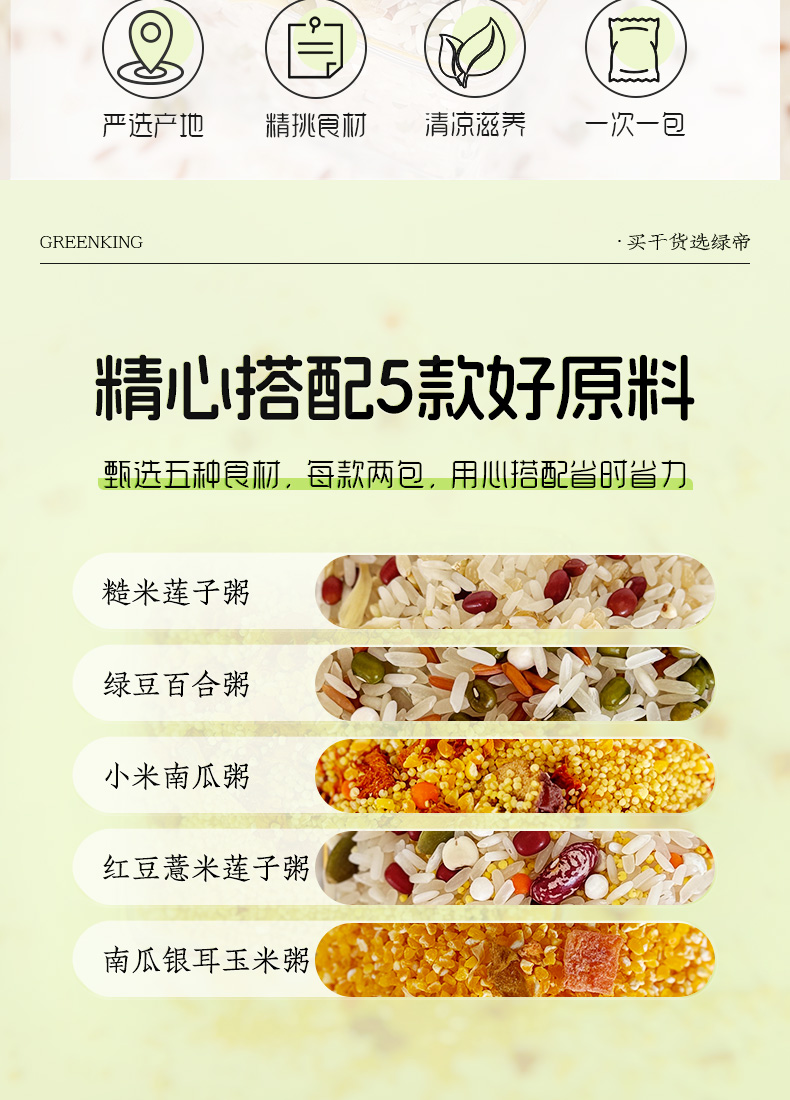 商品名称:(世星阳光)绿帝十日夏凉消暑粥料1.5kg 清凉滋养 多重搭配 口味丰富