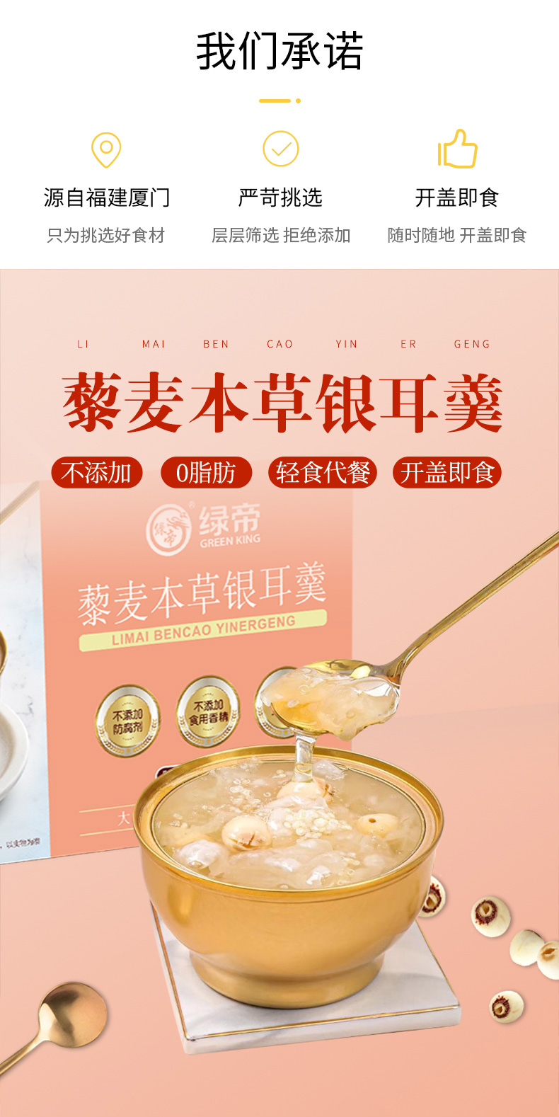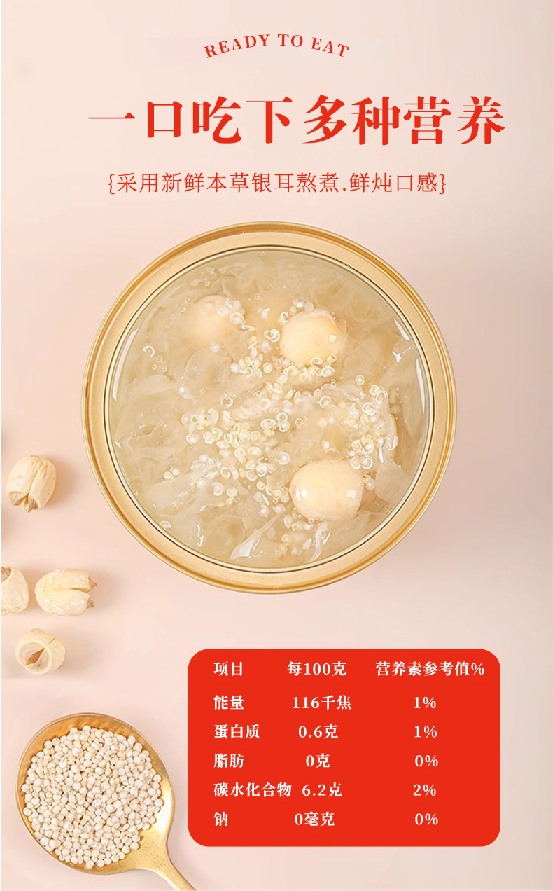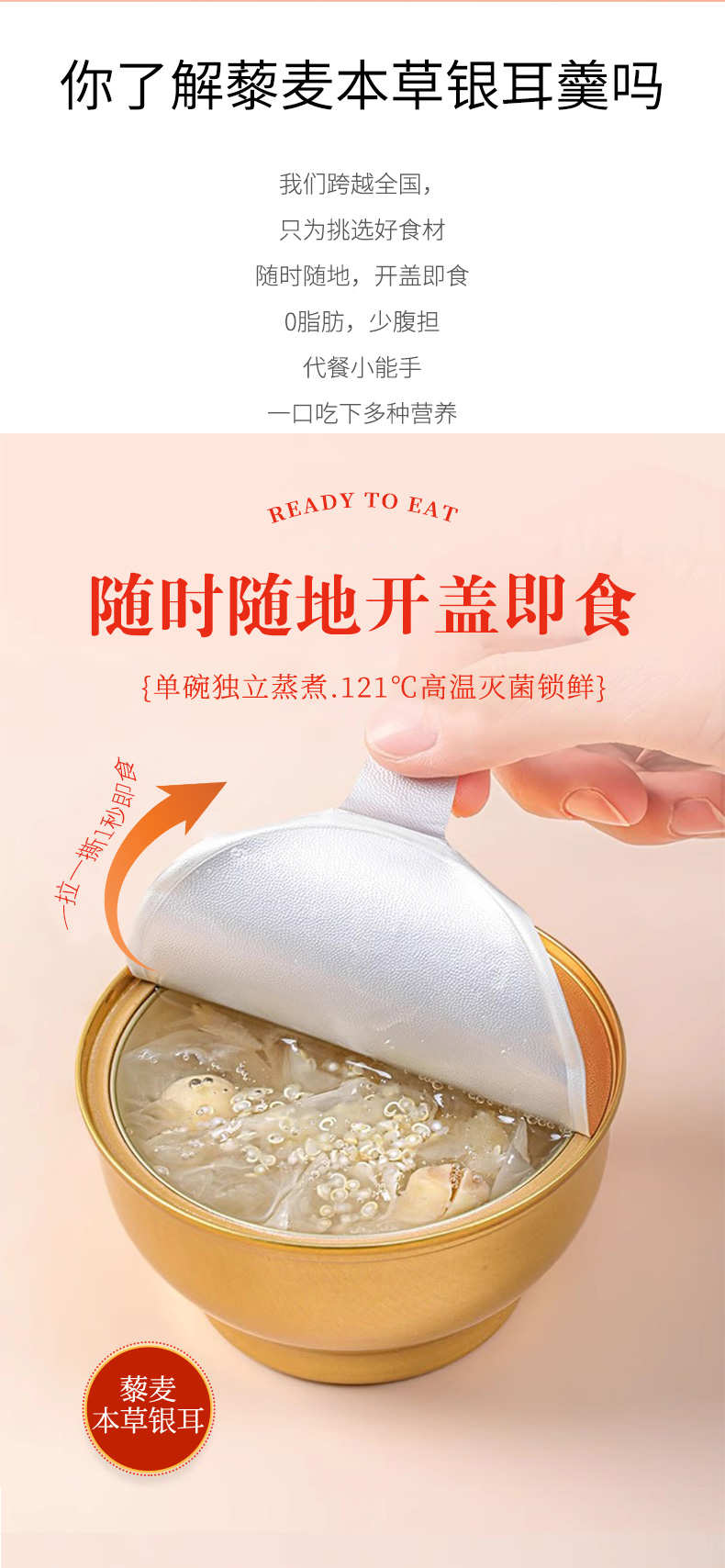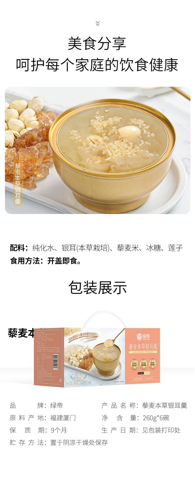 商品名称:(世星阳光) 绿帝藜麦鲜炖银耳羹260克X6碗 0脂肪轻食代餐开盖即食