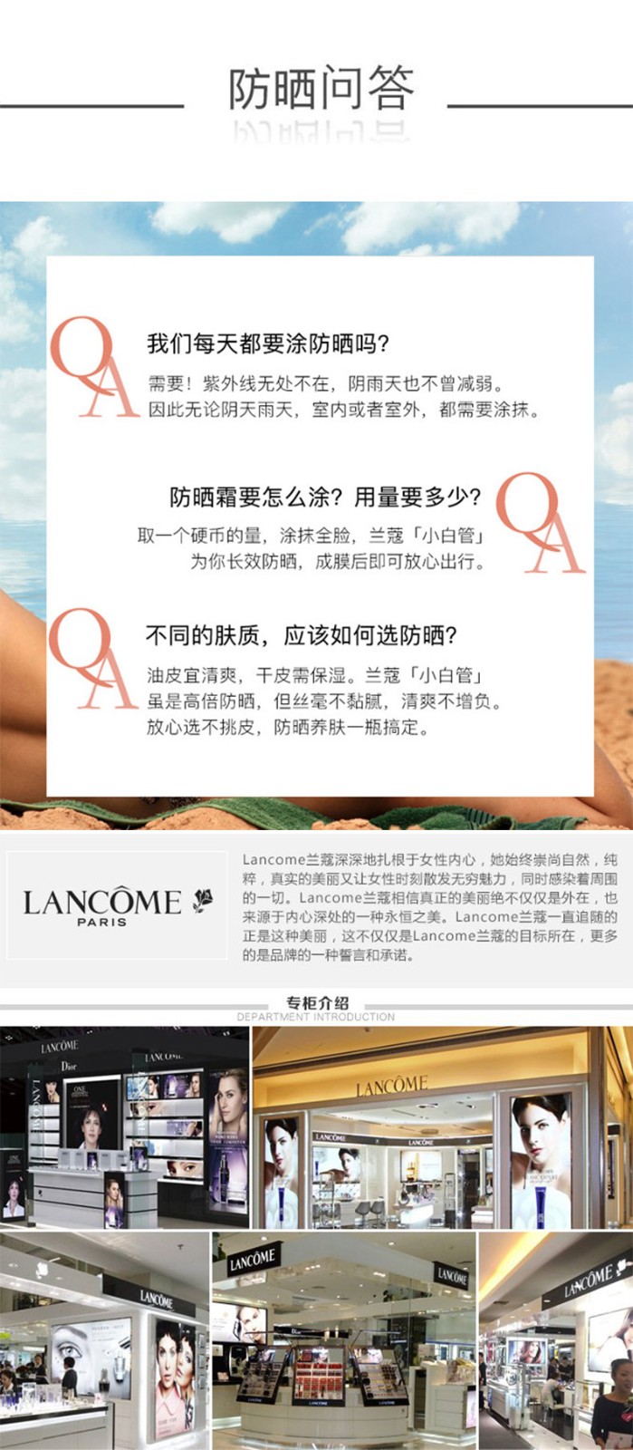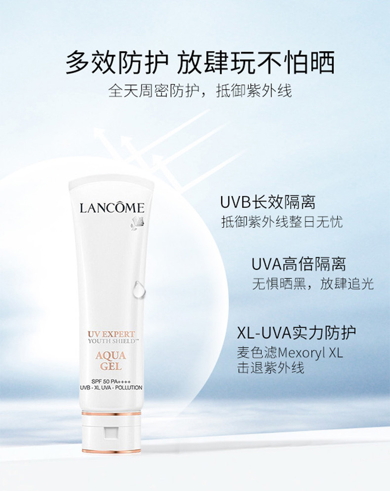 商品名称:(世星阳光) 兰蔻轻透水漾防晒乳50ml 小白管隔离清爽生日礼物达人专属