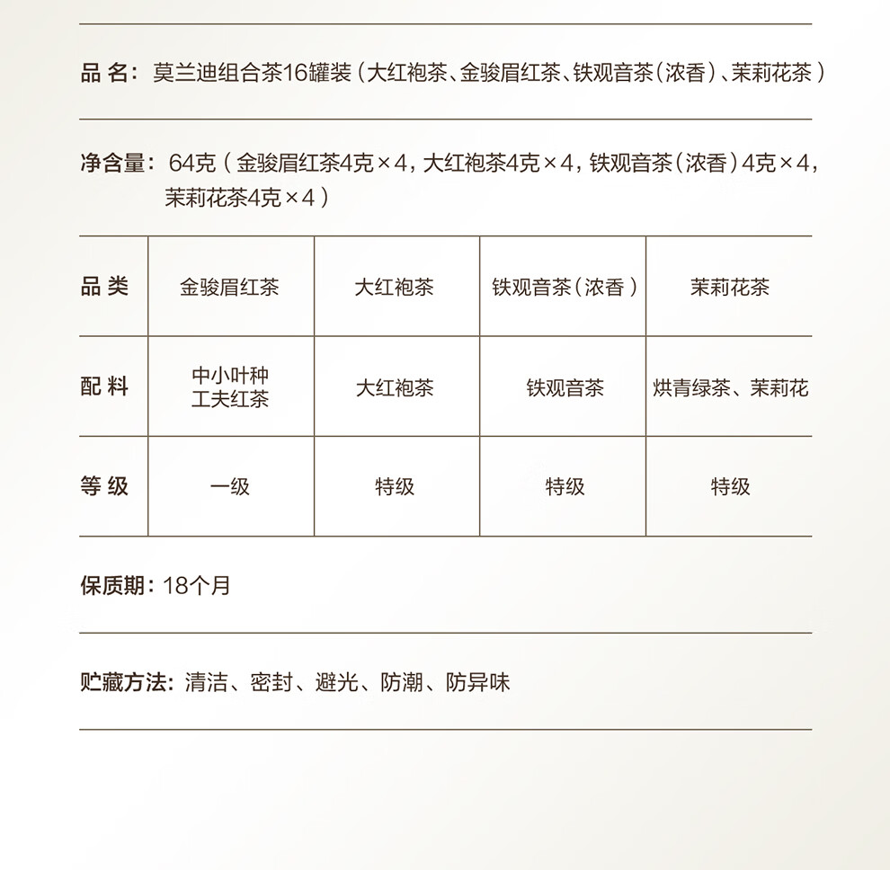 商品名称:(超运·禾贸)小罐茶 莫兰迪小罐16拼64g(4品类*4罐*4g)