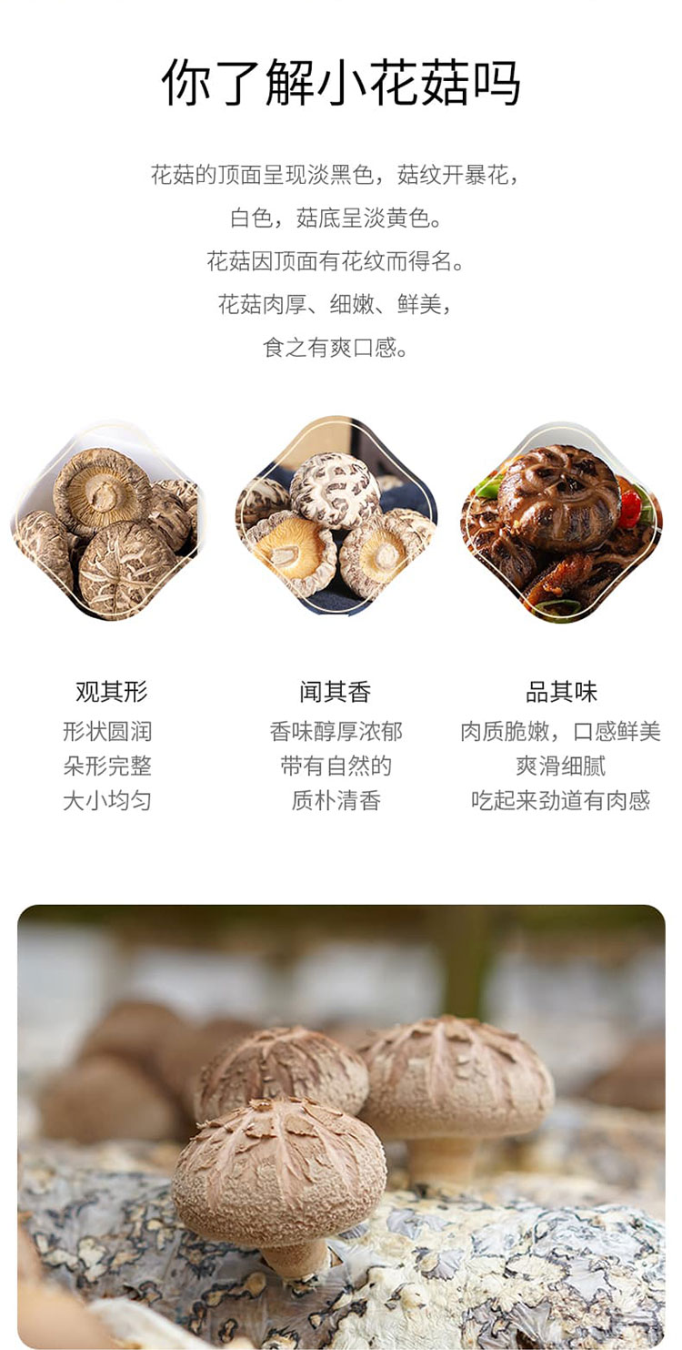 商品名称:(中合誉品)绿帝小花菇250g 蘑菇 山珍干货 食用菌