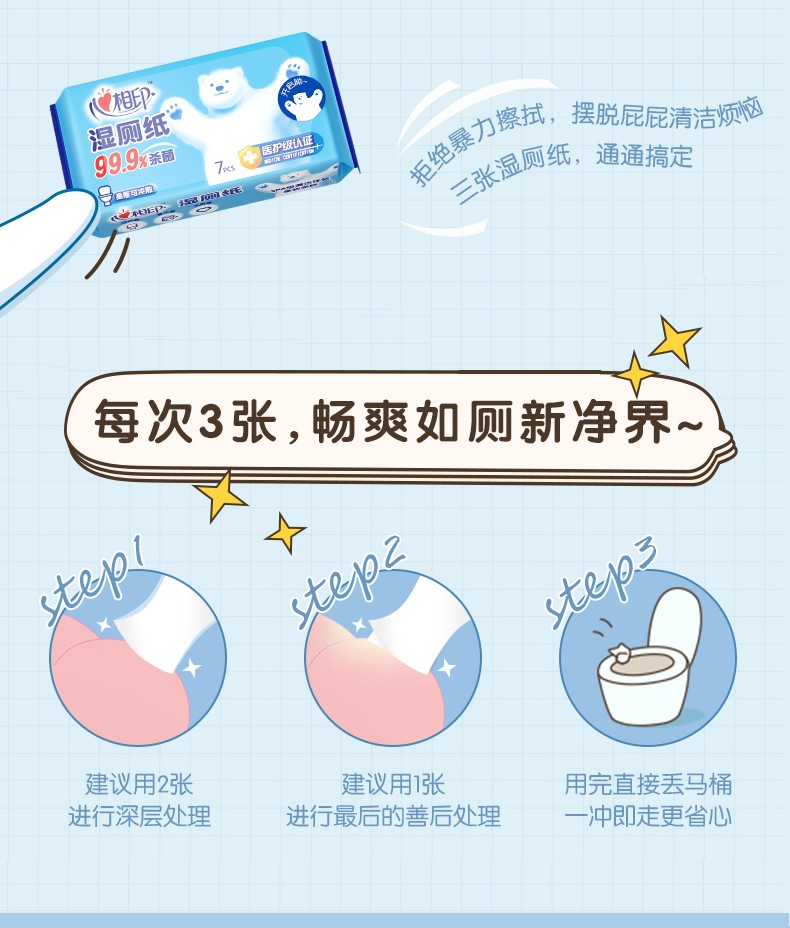 商品名称:(世星阳光)心相印湿厕纸系列(7片*8包)*3提组合装 3XCY007+P1湿纸巾