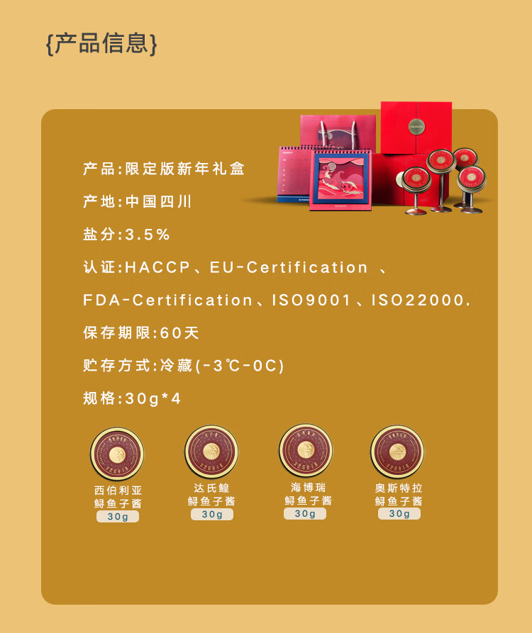 商品名称:(超运·禾贸)芙思塔鱼子酱蛇年限定版鲟遇礼盒30g*4 生鲜海鲜鱼籽酱即食源头直发