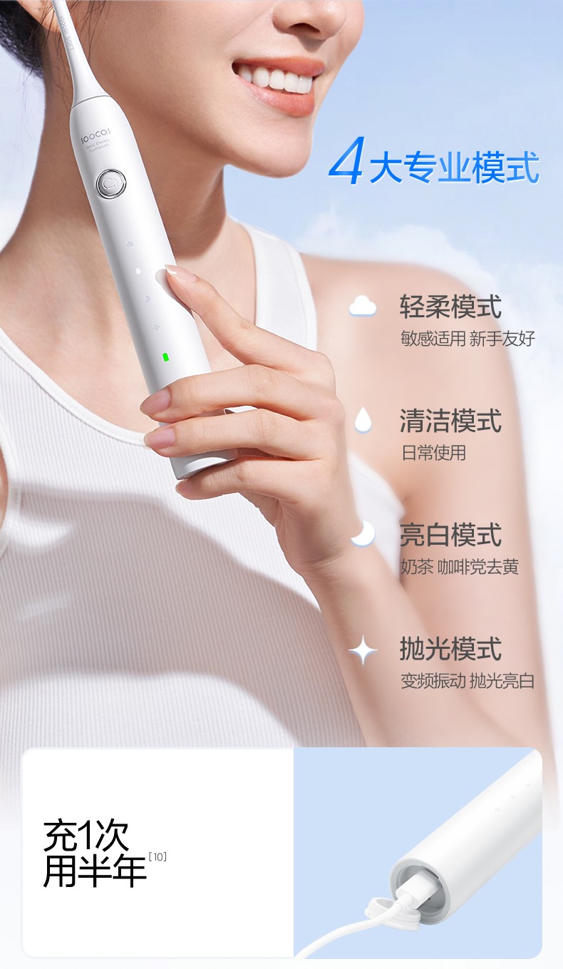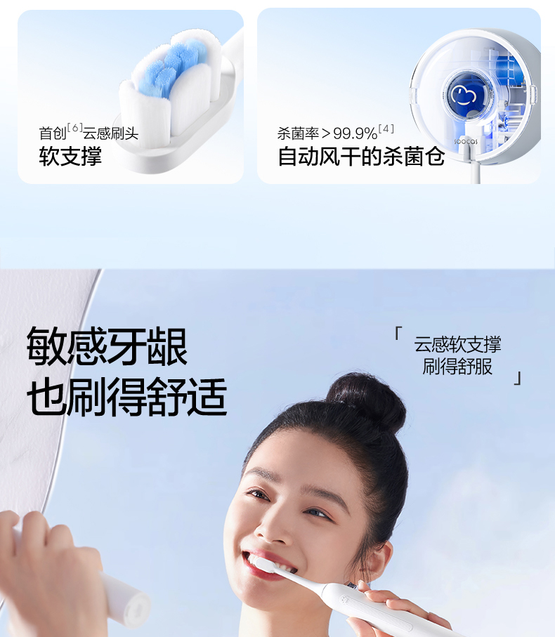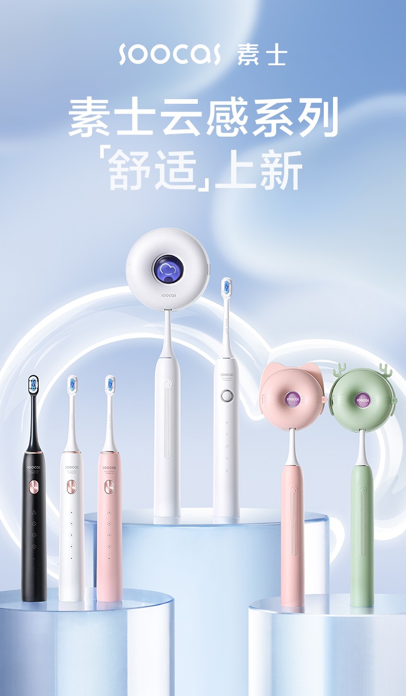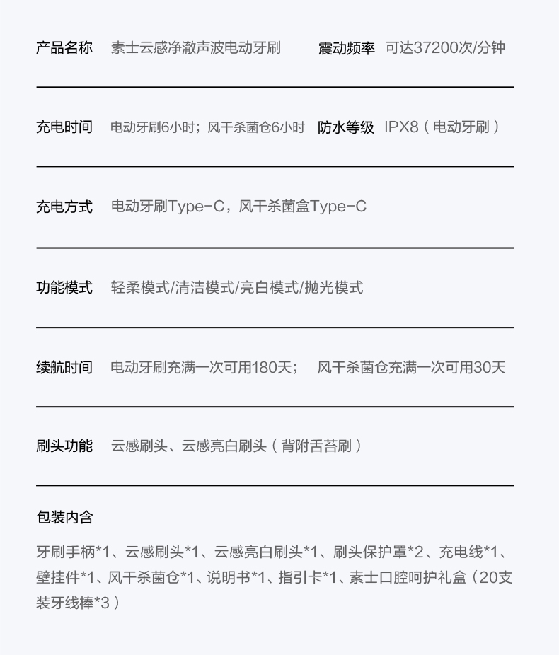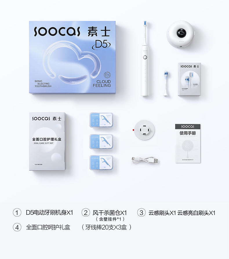 商品名称:(世星阳光)素士云感净澈声波电动牙刷 D5 白色 成人软毛护龈美白风干杀菌电动牙刷礼盒