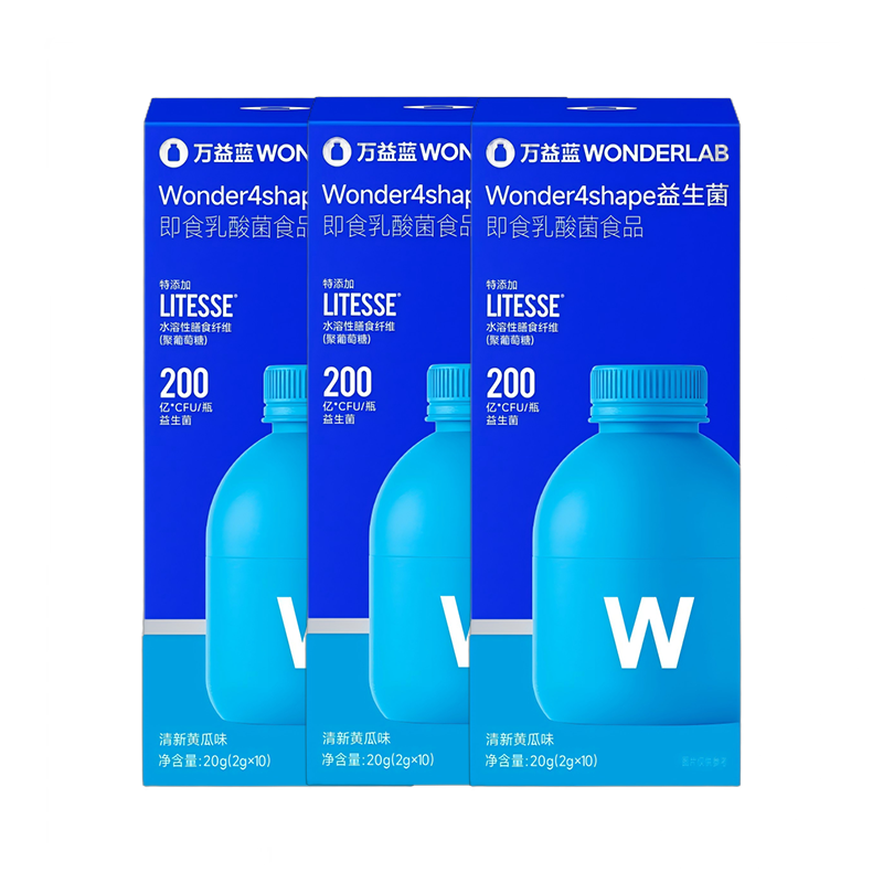 商品名称:(汇景缘)万益蓝WONDERLAB_Wonder4shape益生菌即食乳酸菌食品_10颗装_25年版*3盒浅蓝小蓝瓶成人菌群管理法