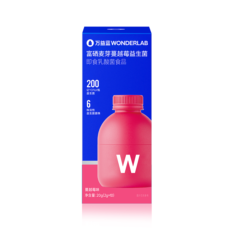 商品名称:(汇景缘)万益蓝WONDERLAB_富硒麦芽蔓越莓益生菌即食乳酸菌食品_10瓶盒-25年版女性私处护理健康
