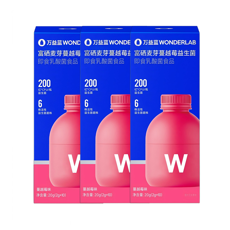 商品名称:(汇景缘)万益蓝WONDERLAB_富硒麦芽蔓越莓益生菌即食乳酸菌食品_10瓶-25年版*3盒女性私处护理健康