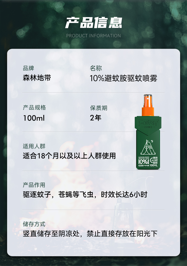 商品名称:(超运·禾贸)森林地带驱蚊液100ML(探索款)【SLDD004】 避蚊胺驱蚊水驱蚊神器防蚊花露水驱蚊