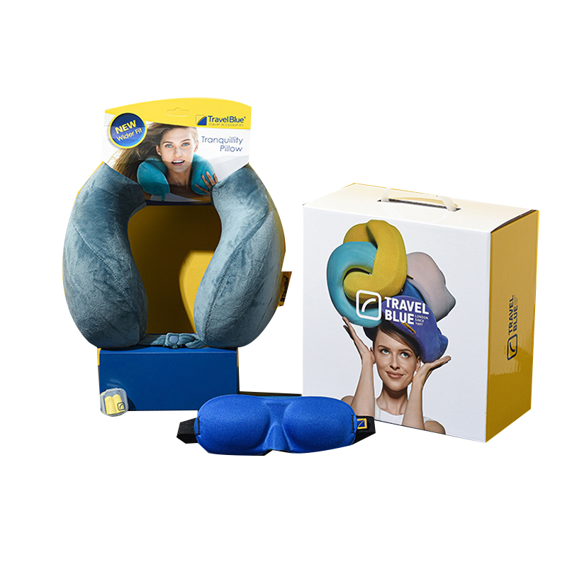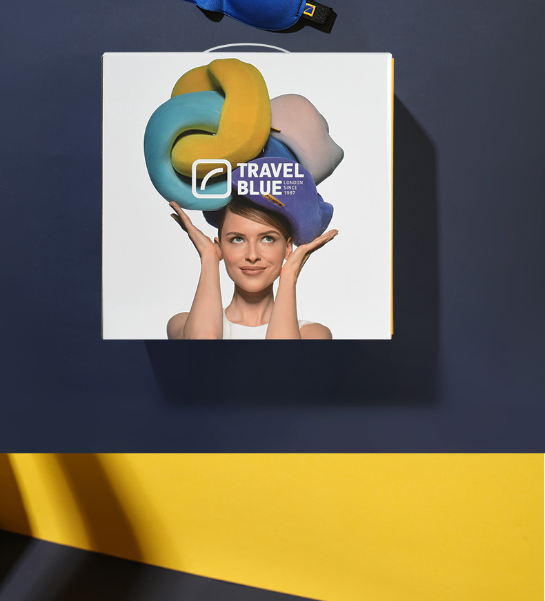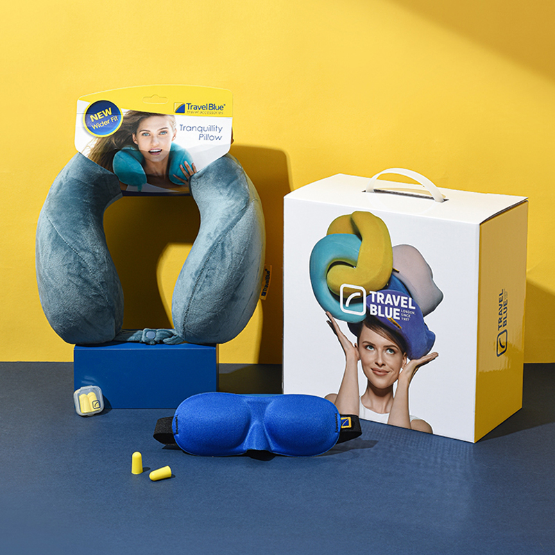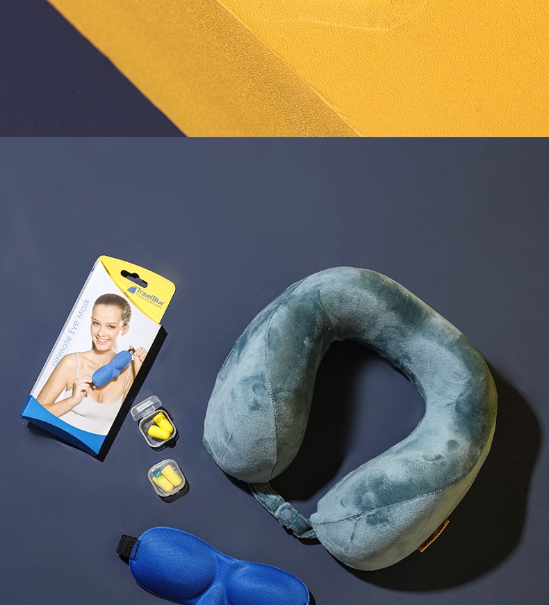(超运·禾贸)英国蓝旅Travel Blue旅行三件套装颈枕眼罩耳塞6212蓝色 线下同款记忆棉u型枕礼盒套装旅行居家午休睡眠三件套送人
