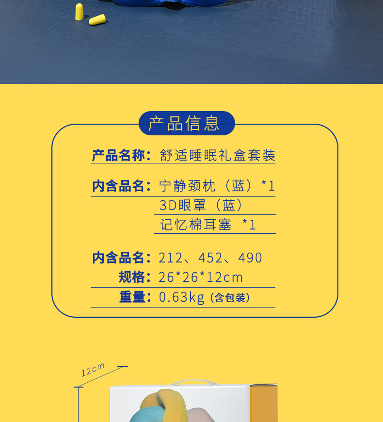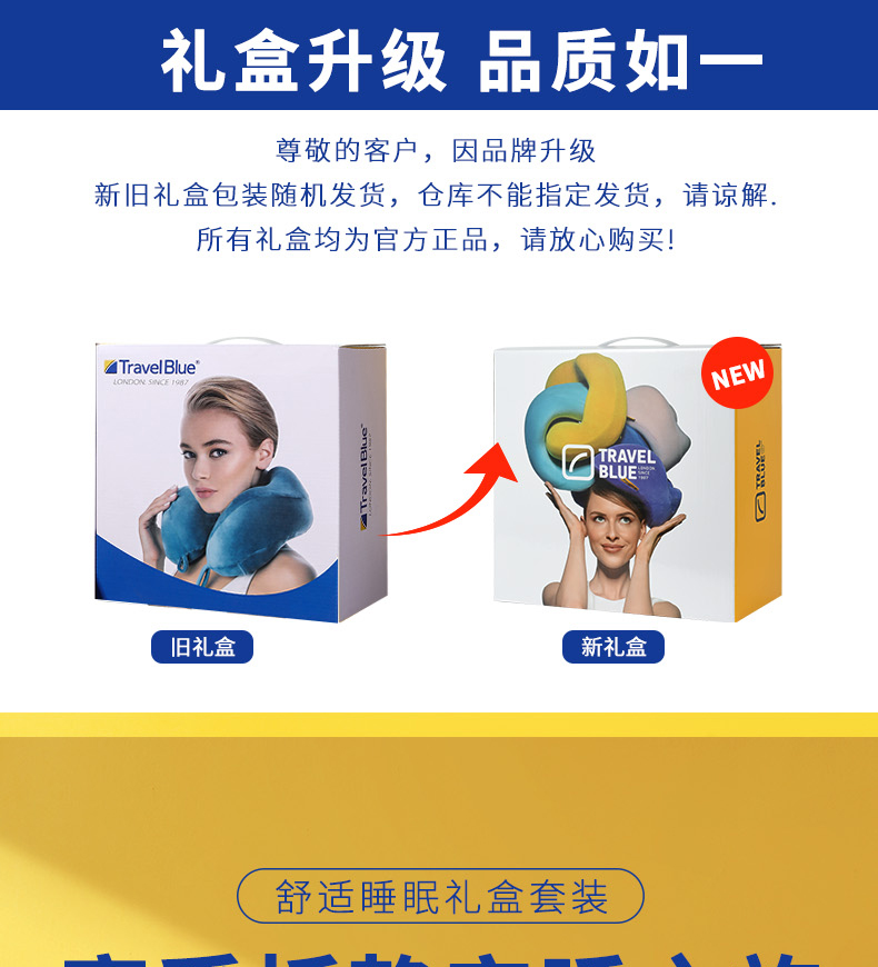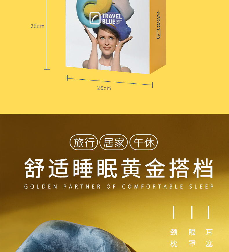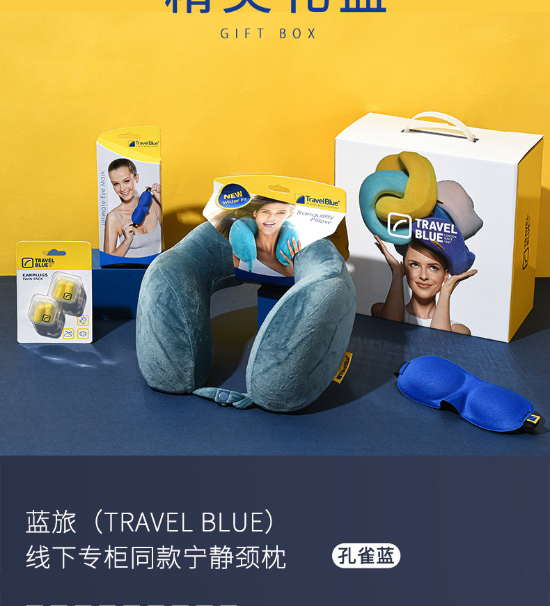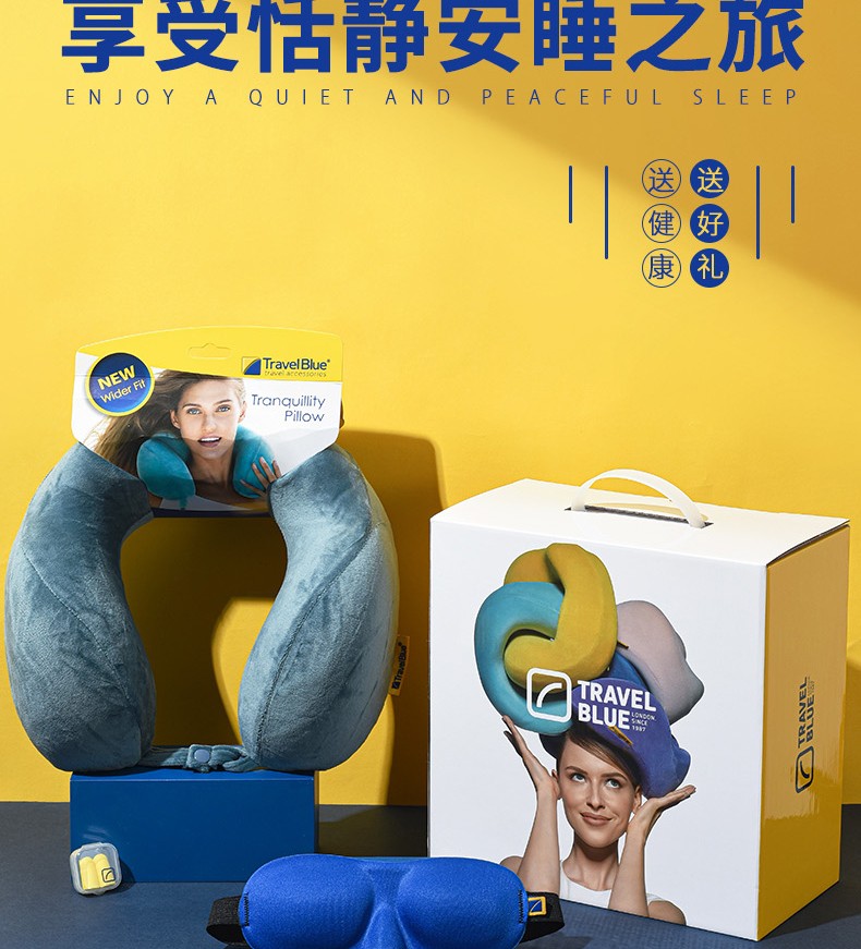 商品名称:(超运·禾贸)英国蓝旅Travel Blue旅行三件套装颈枕眼罩耳塞6212蓝色 线下同款记忆棉u型枕礼盒套装旅行居家午休睡眠三件套送人