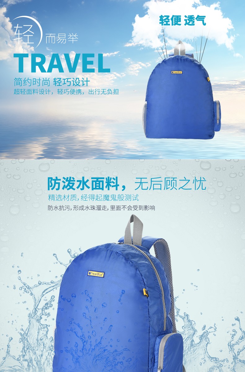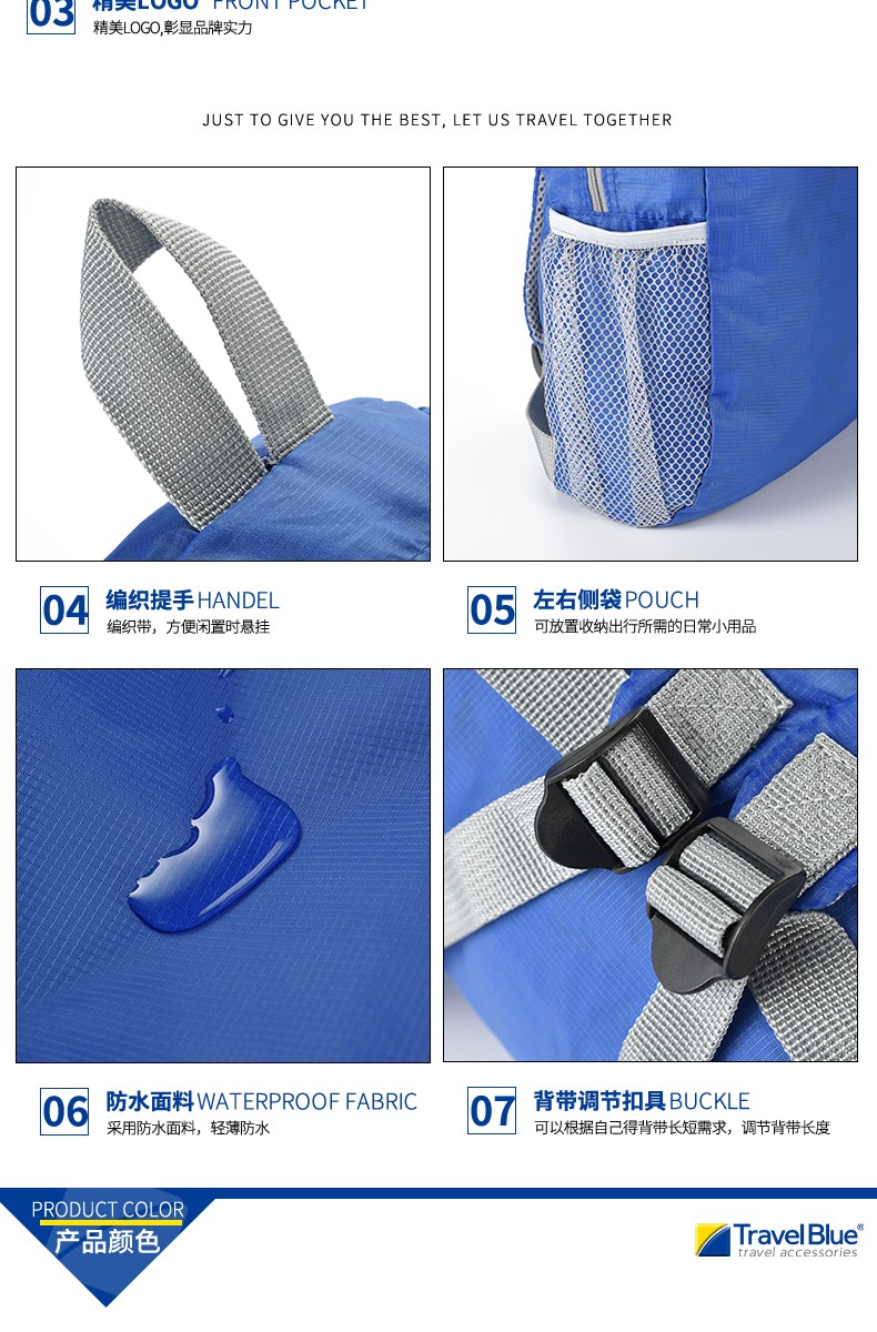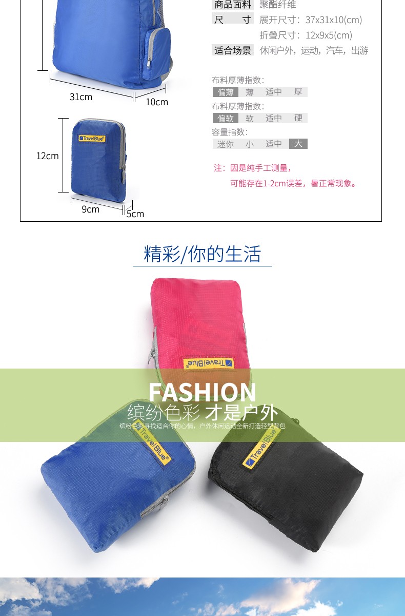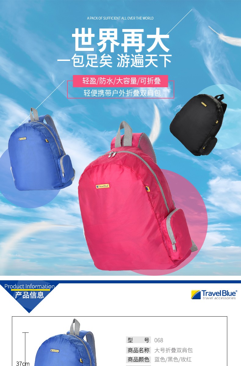 商品名称:(超运·禾贸)英国蓝旅Travel Blue大号折叠双肩包068 男女通用户外旅行防泼水可折叠收纳双肩包 蓝色
