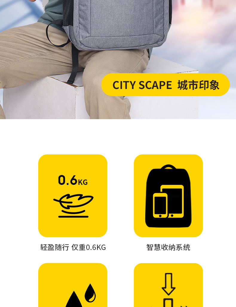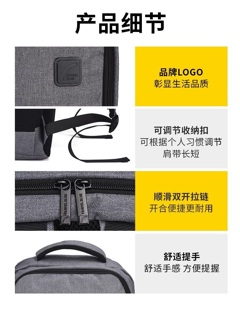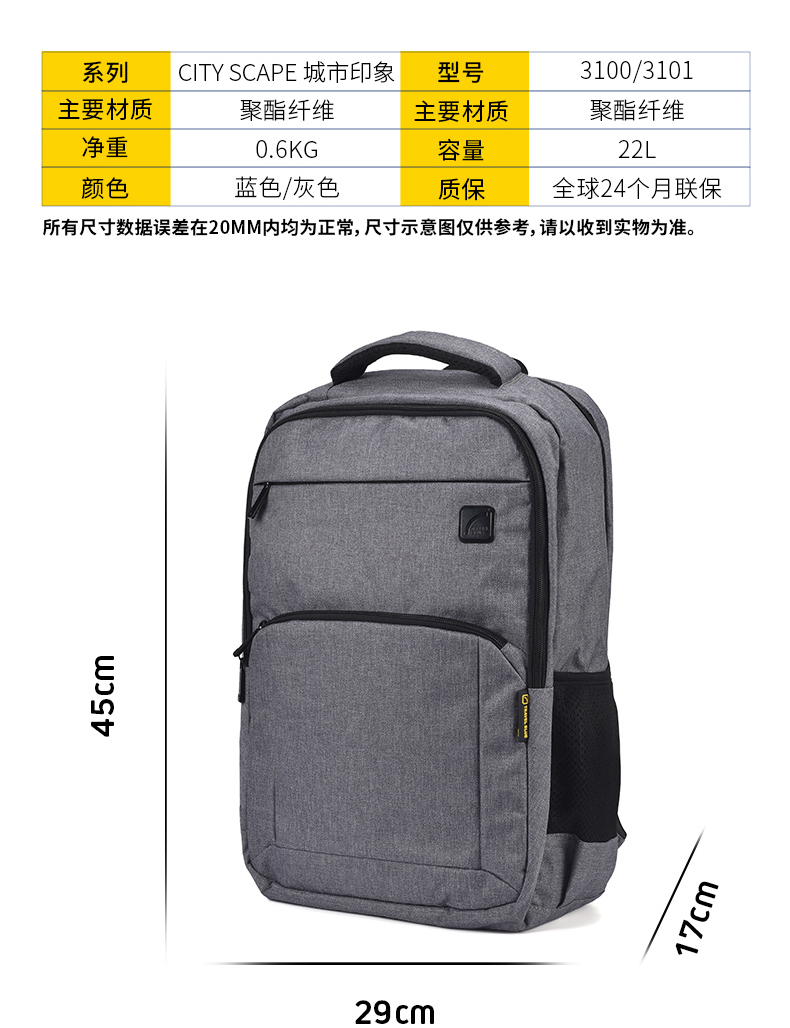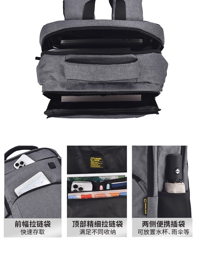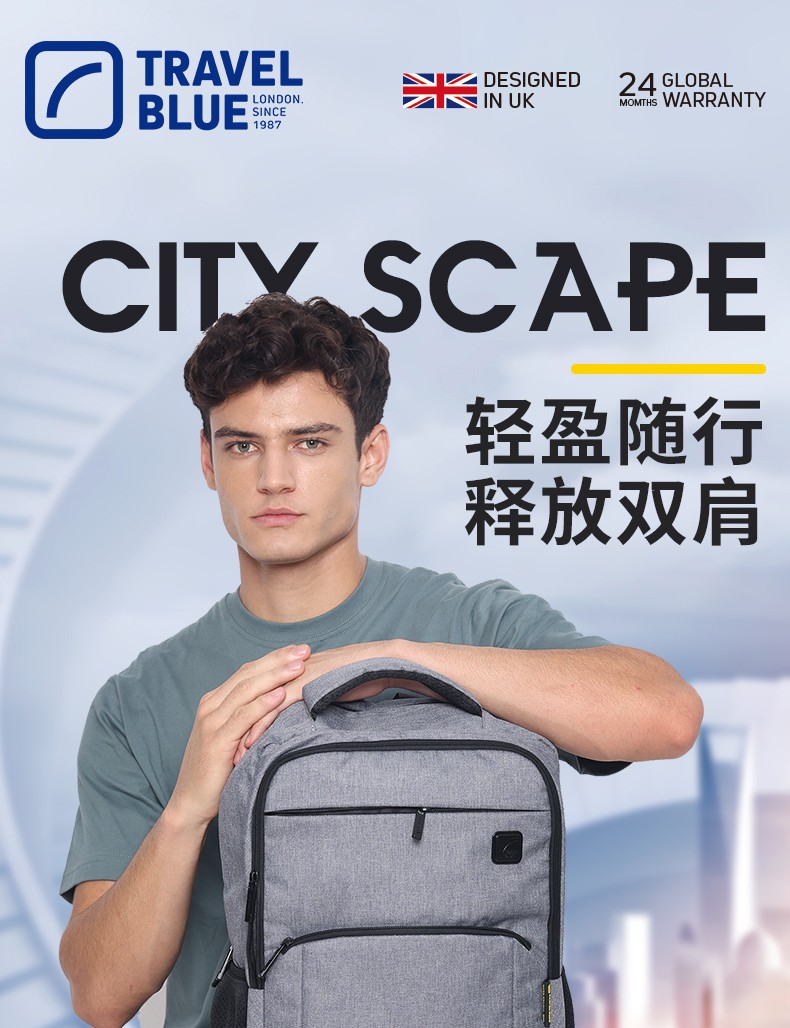 商品名称:(超运·禾贸)英国蓝旅Travel Blue双肩背包-城市印象灰色3101 16英寸男女都市休闲商务电脑包出差旅行包防泼水
