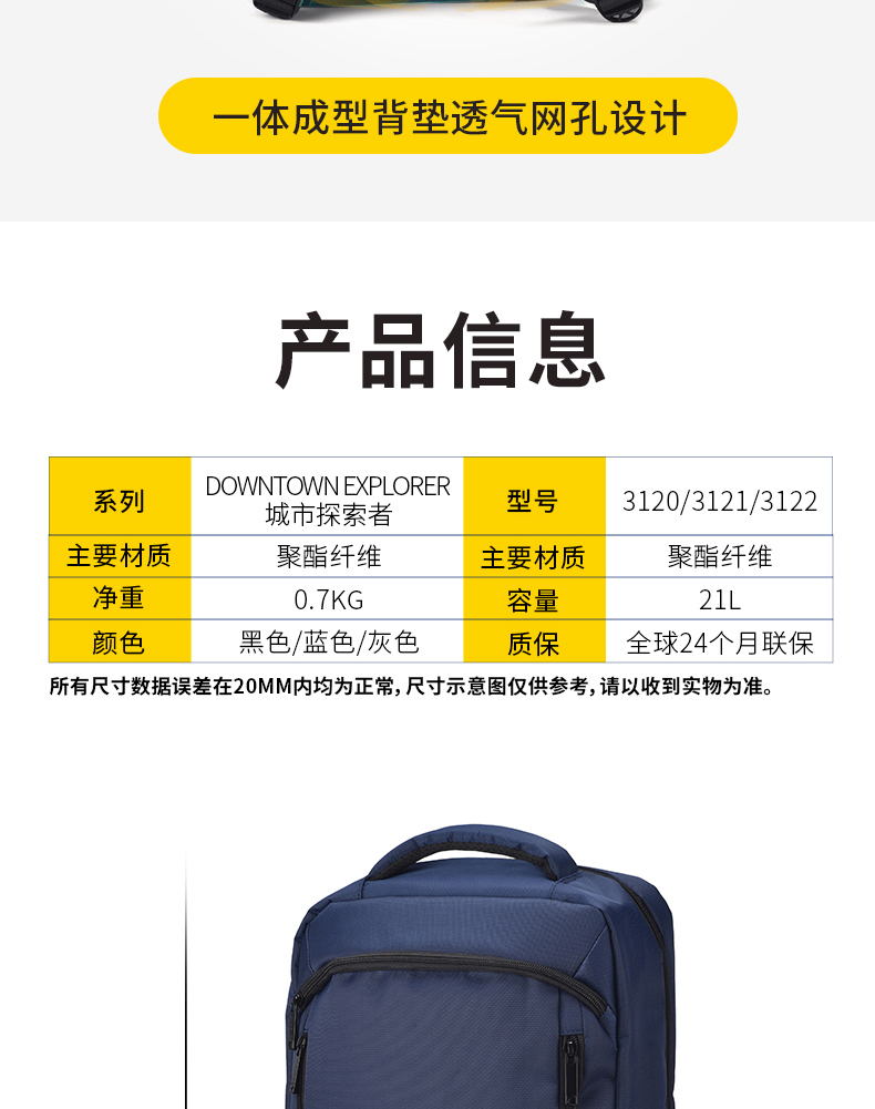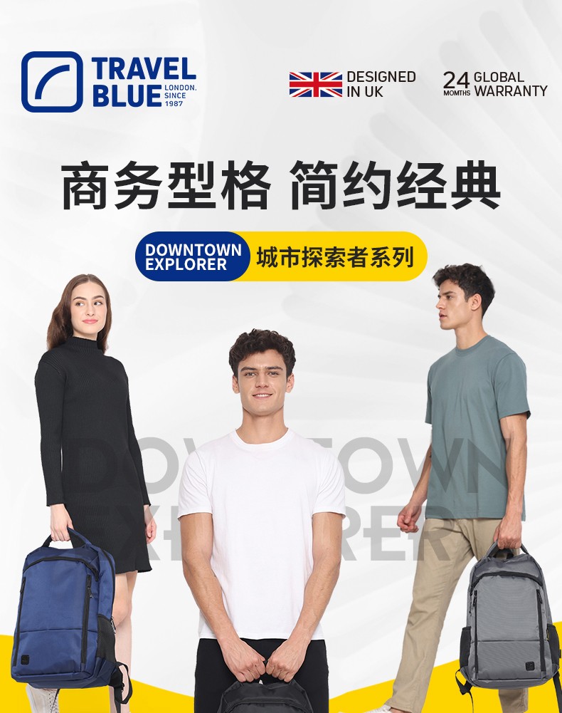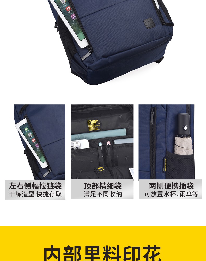 商品名称:(超运·禾贸)英国蓝旅Travel Blue双肩背包-城市探索者3120黑色 16英寸男女商务通勤背包轻便休闲旅行包 黑色