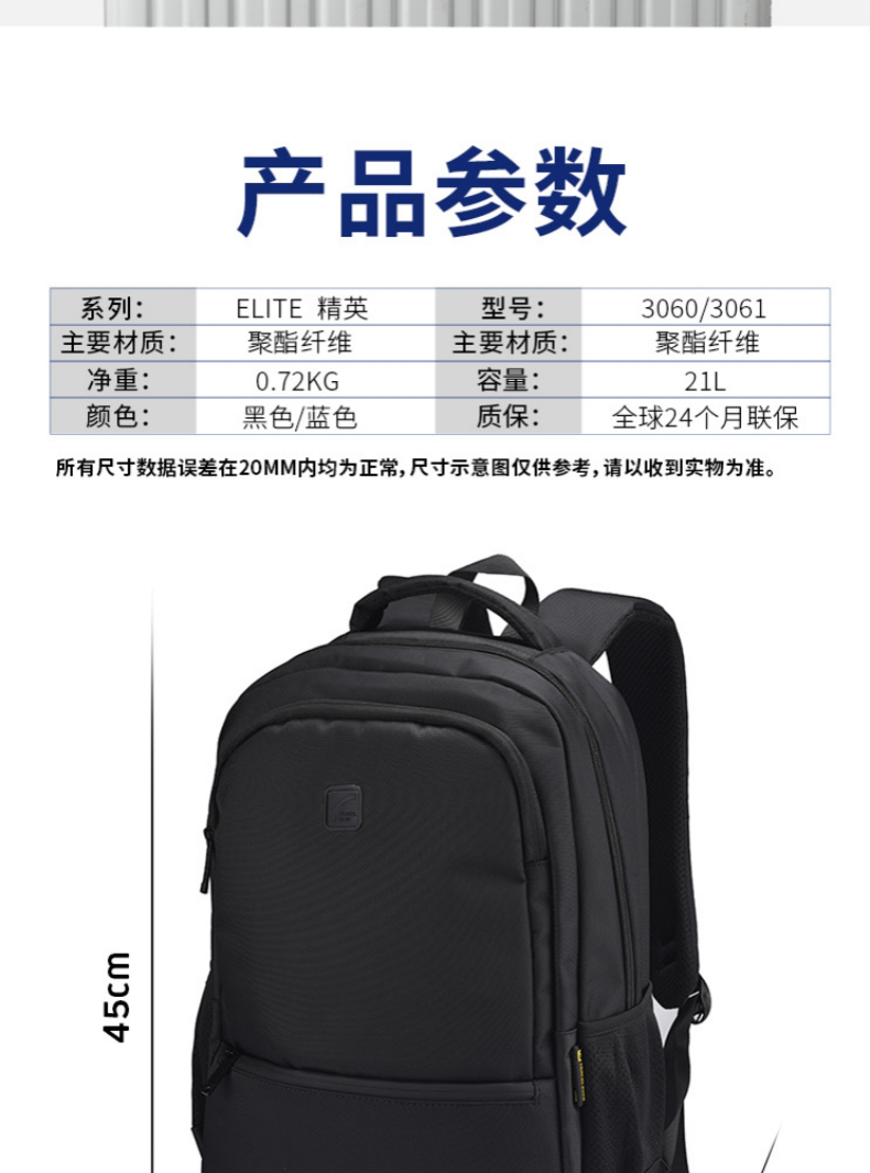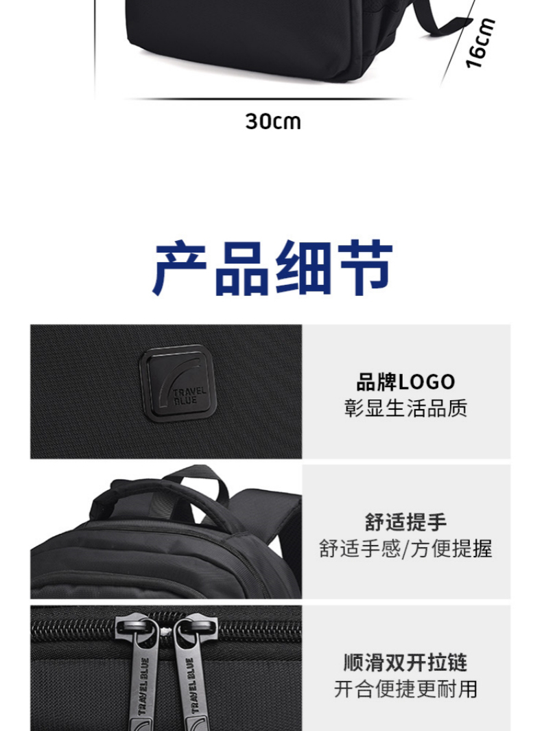 商品名称:(超运·禾贸)英国蓝旅Travel Blue双肩背包-精英3060黑色 多隔层轻便旅游出差旅行包简约休闲商务背包16英寸笔记本电脑背包