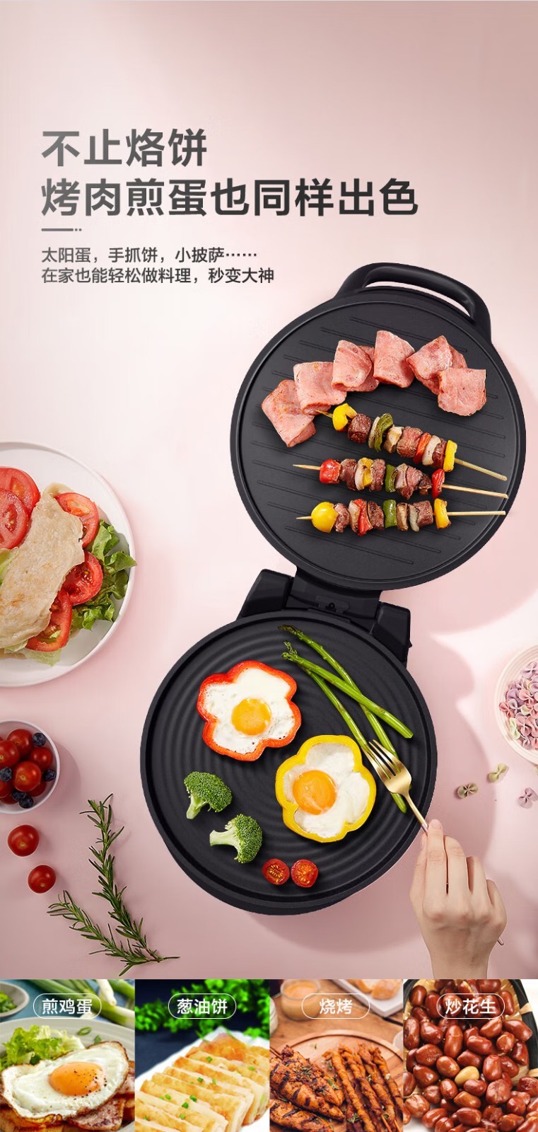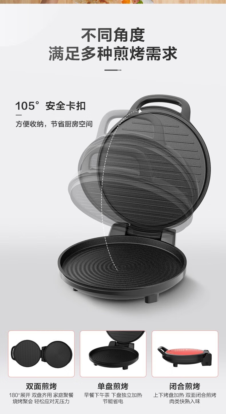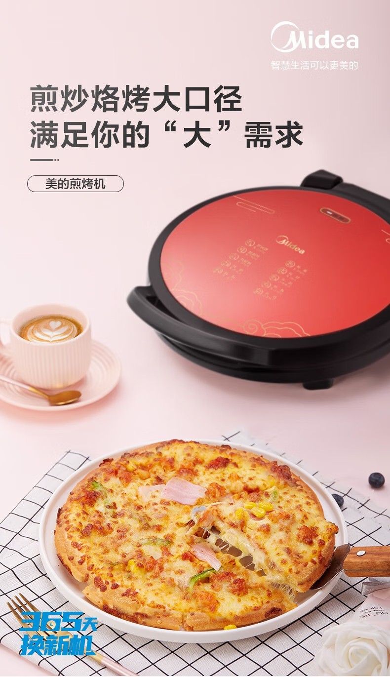 (巨邦佑)R+美的(Midea) 电饼铛KE3412 煎饼锅家用早餐机煎烤机烙炒烤多用烙饼机深槽大直径自动控温悬浮式设计 J红色