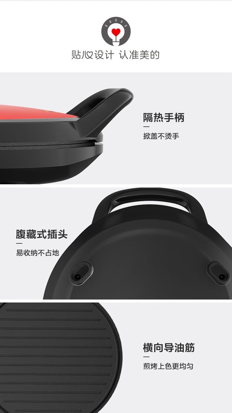 商品名称:(巨邦佑)R+美的(Midea) 电饼铛KE3412 煎饼锅家用早餐机煎烤机烙炒烤多用烙饼机深槽大直径自动控温悬浮式设计 J红色