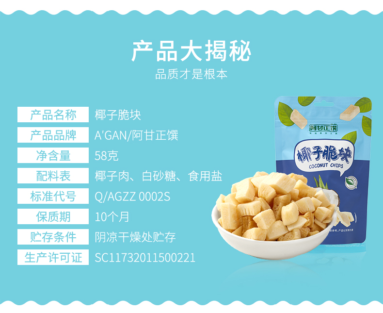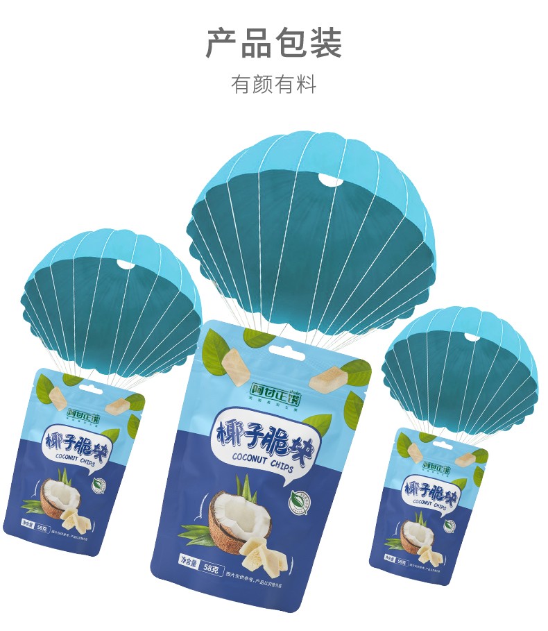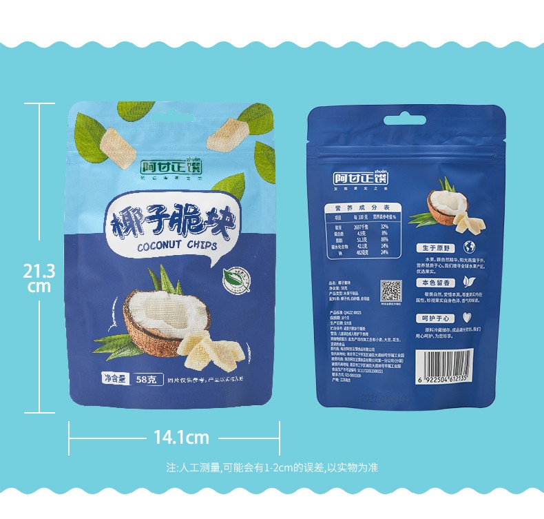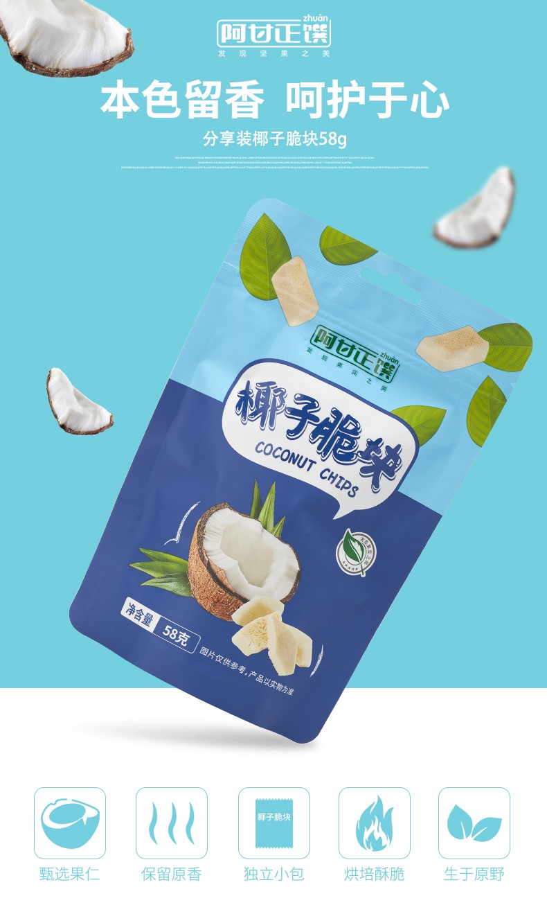 商品名称:(巨邦佑)R+阿甘正馔椰子脆块58g*4袋 小椰肉 海南特产休闲零食代餐果干椰子果肉片
