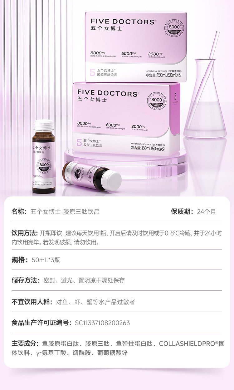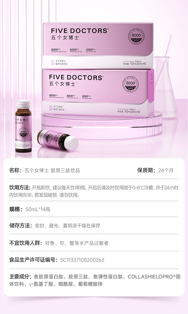 商品名称:(巨邦佑)BJ+五个女博士胶原三肽8000 3支/14支 鱼胶原蛋白饮品促进胶原合成口服液弹性蛋白肽烟酰胺