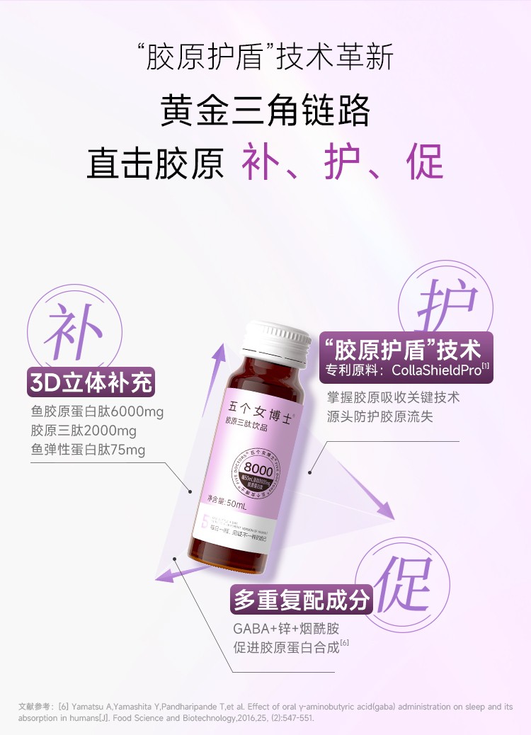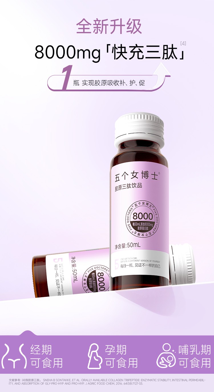 (巨邦佑)BJ+五个女博士胶原三肽8000 3支/14支 鱼胶原蛋白饮品促进胶原合成口服液弹性蛋白肽烟酰胺