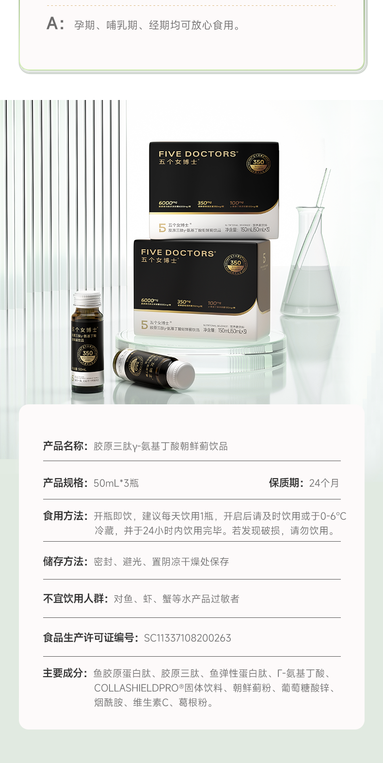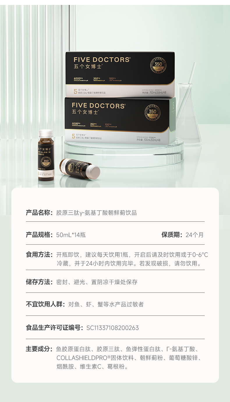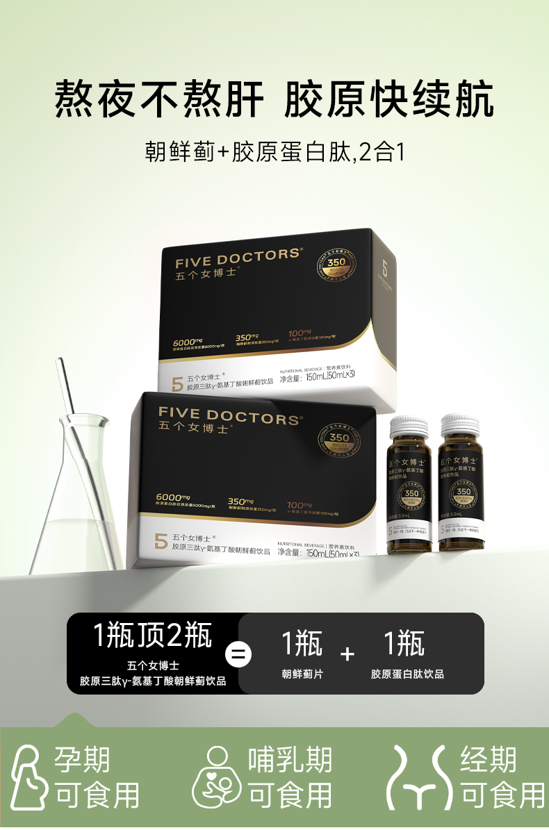 商品名称:(巨邦佑)BJ+五个女博士胶原三肽γ-氨基丁酸朝鲜蓟饮(护肝饮)3支/14支 鱼胶原蛋白三肽饮氨基丁酸朝鲜蓟烟酰胺