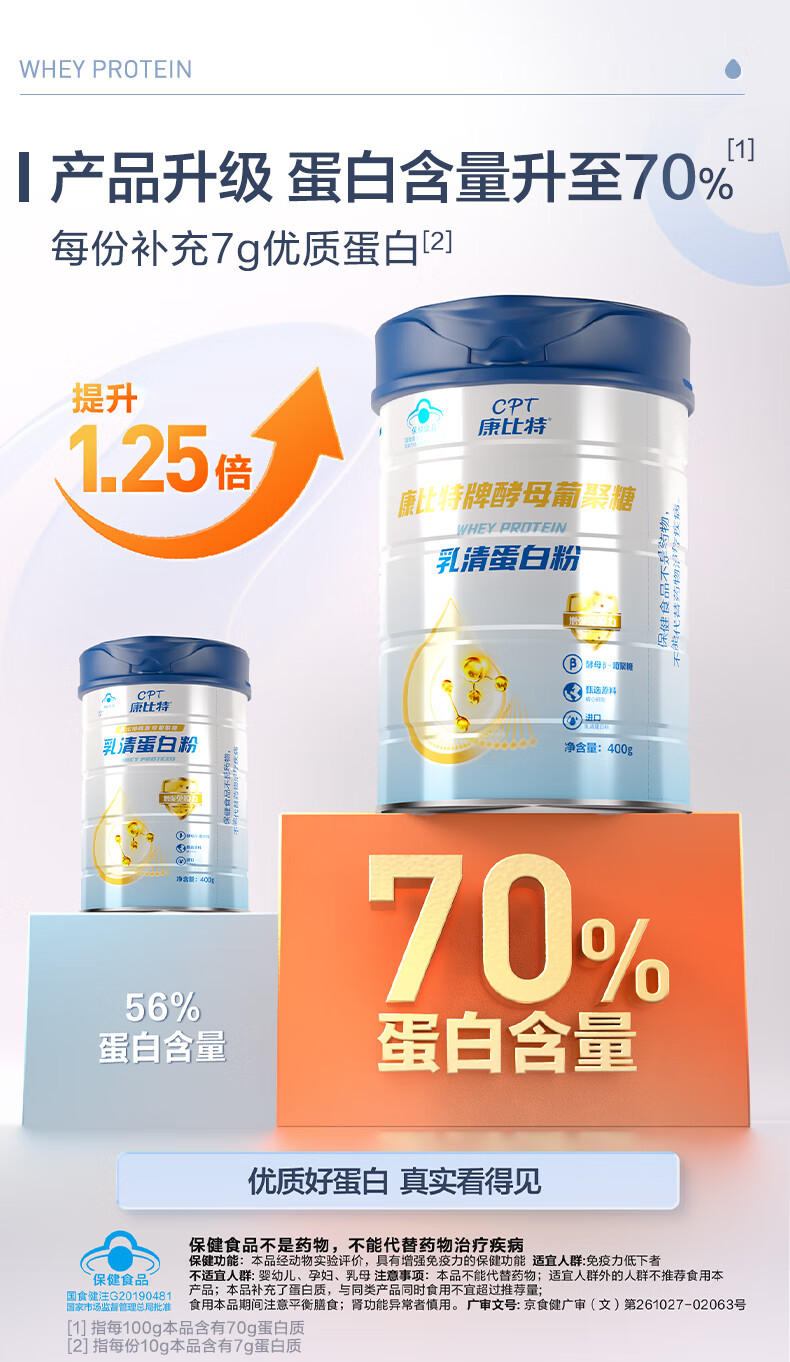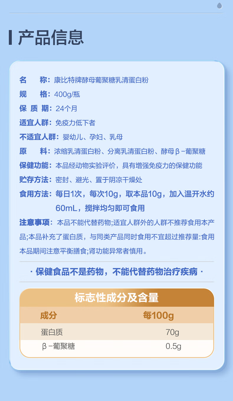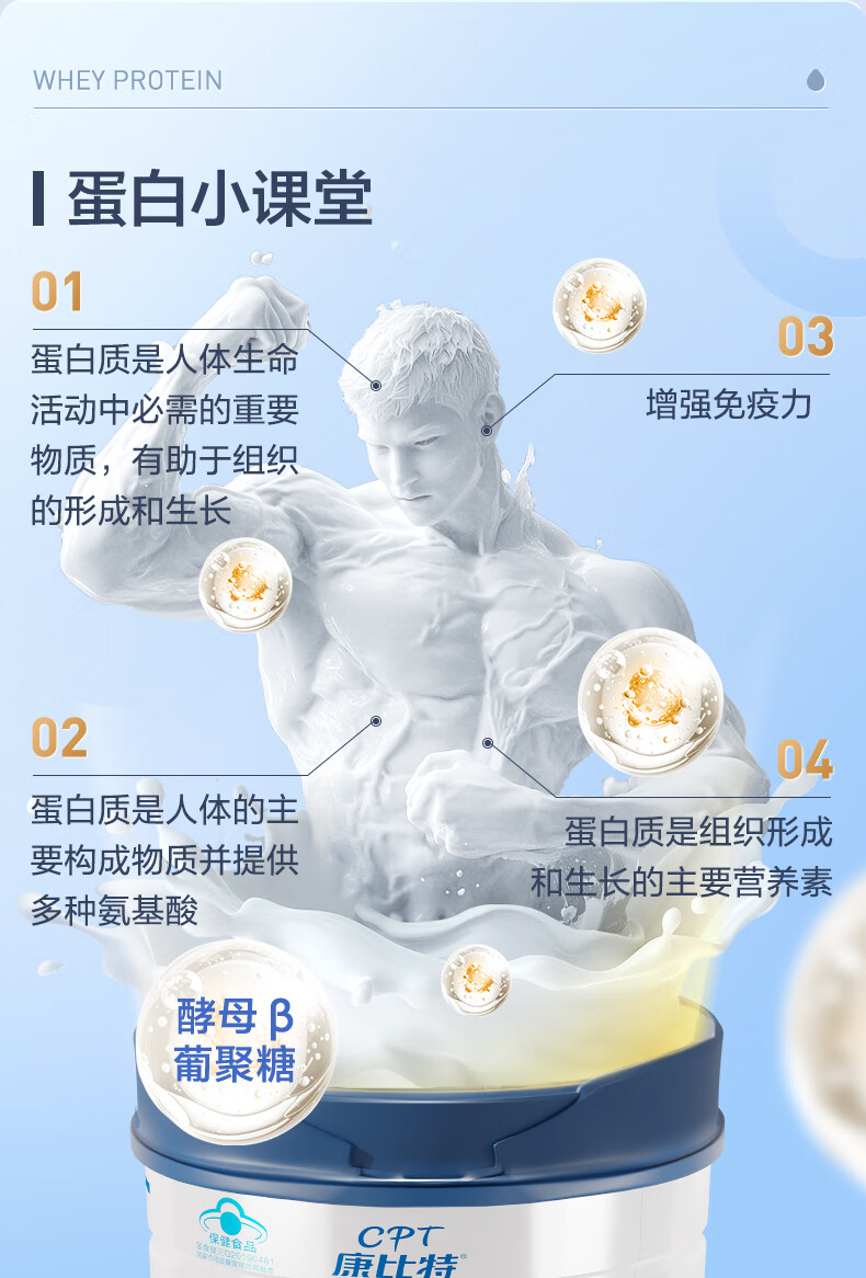 商品名称:(巨邦佑)BJ+康比特 酵母葡聚糖乳清蛋白粉400g(赠摇杯) 中老年人增强免疫力补充营养酵母葡聚糖100%动物蛋白
