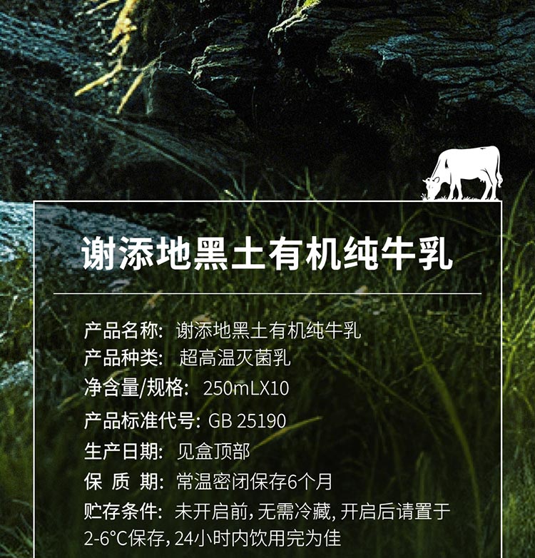 商品名称:(世星阳光) 谢添地梦幻盖3.8g黑土有机纯牛乳 250ml1×10 一年一季 原生乳蛋白3.8g100ml 原生高钙125mg100ml