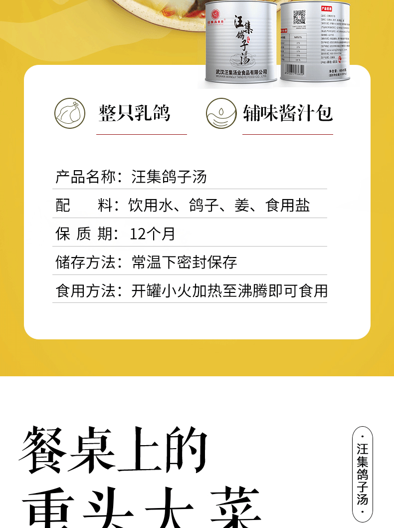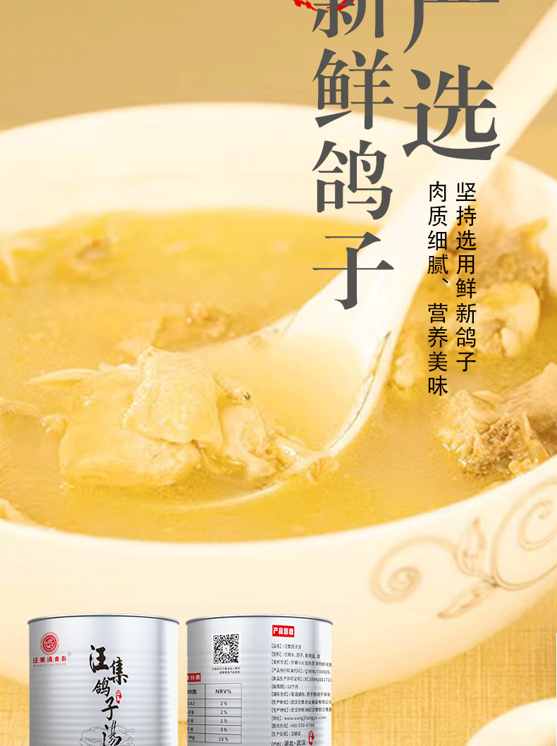 商品名称:(世星阳光) 汪集鸽子汤850*2罐 营养美味性温滋补罐装 自然无添加 鲜香美味 加热即食
