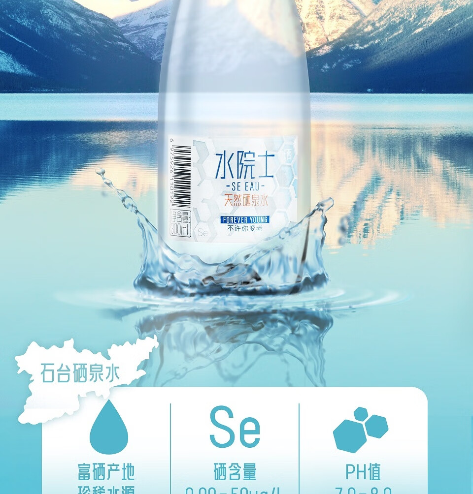 商品名称:(巨邦佑)BJ+水院士天然硒泉水24瓶箱装 300ml/500ml 科学补硒矿泉水富含多种微量元素和矿物质