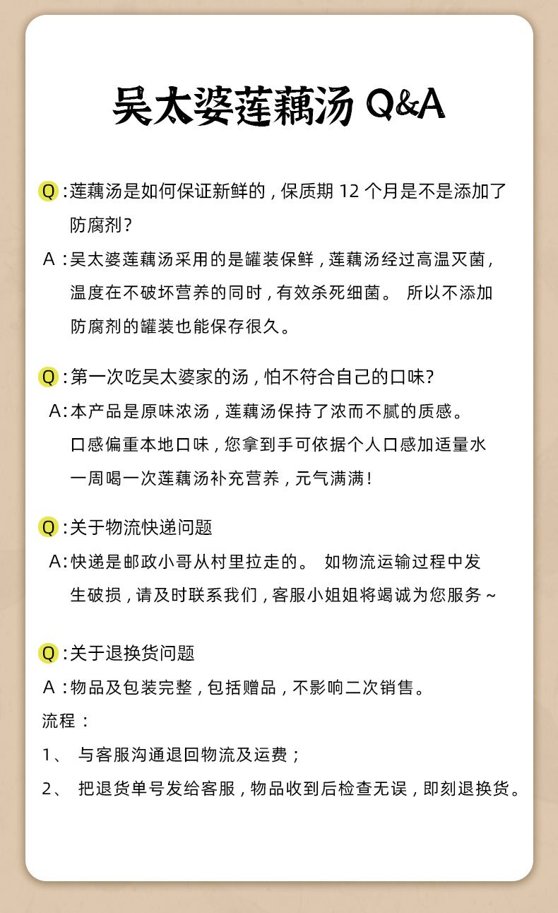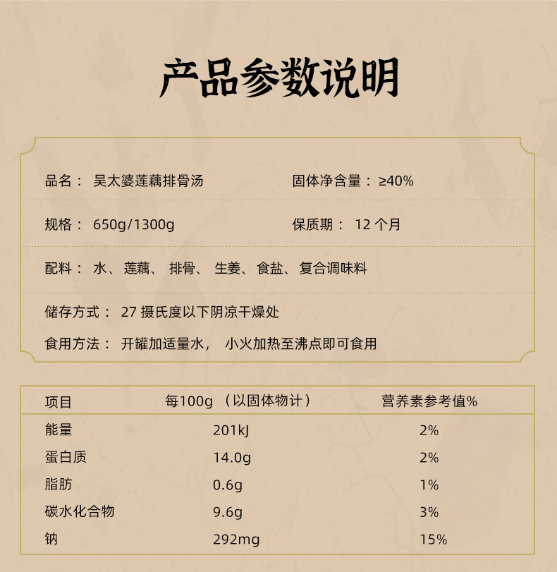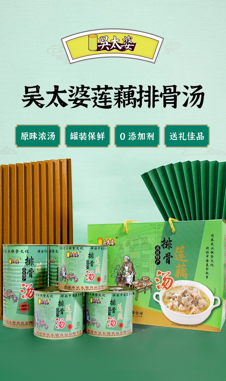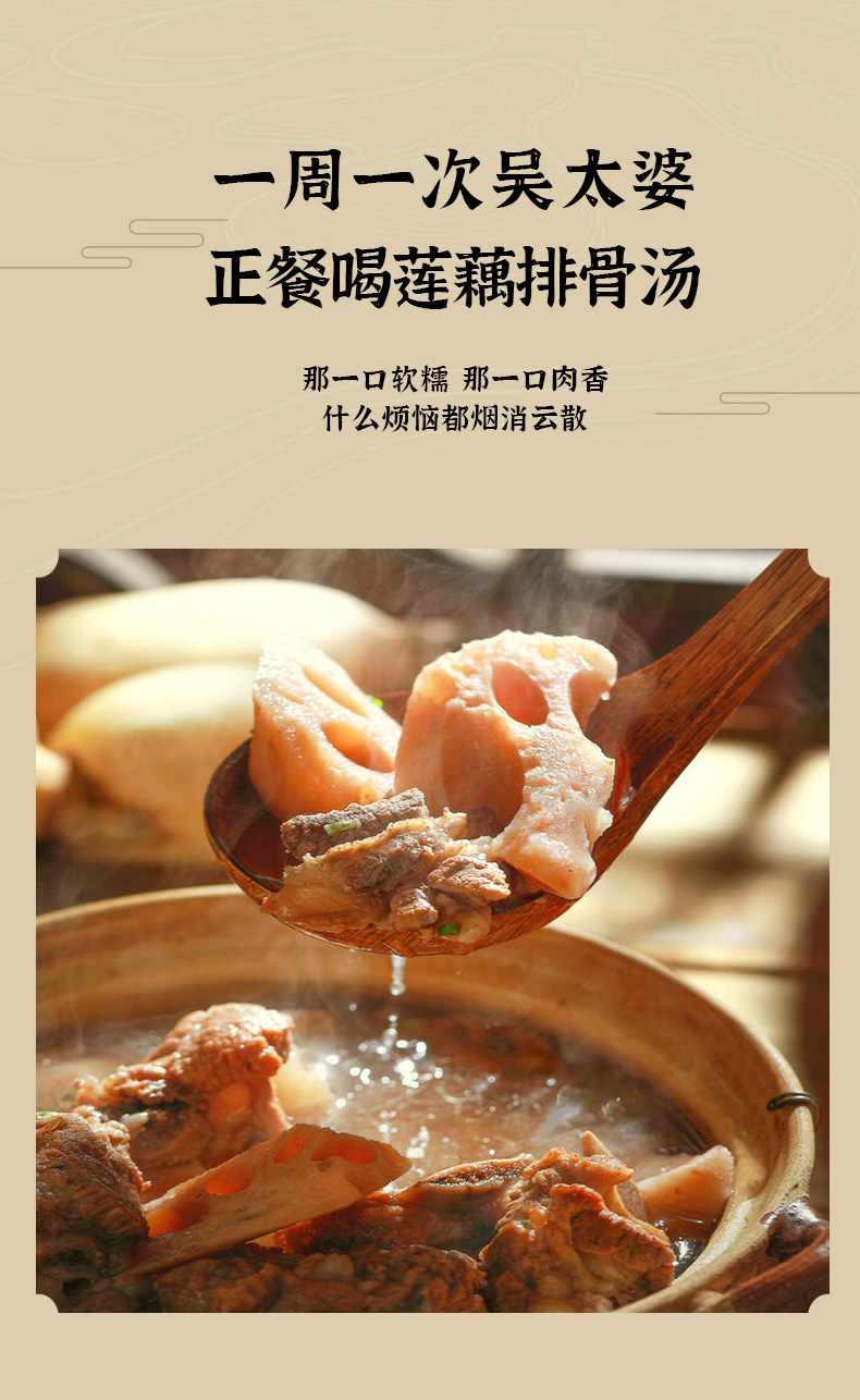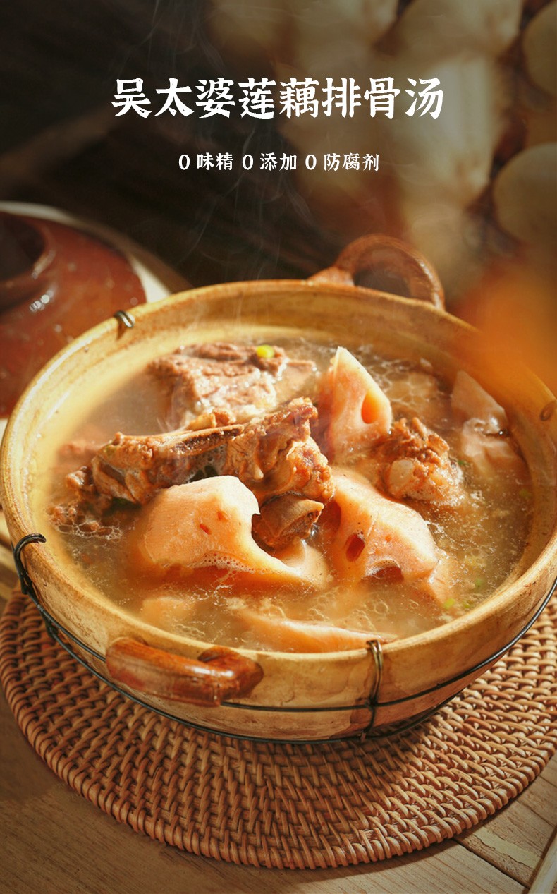 商品名称:(世星阳光) 吴太婆 莲藕排骨汤650g/1300g 营养美味性温滋补 原味浓汤 罐装保鲜 0防腐剂
