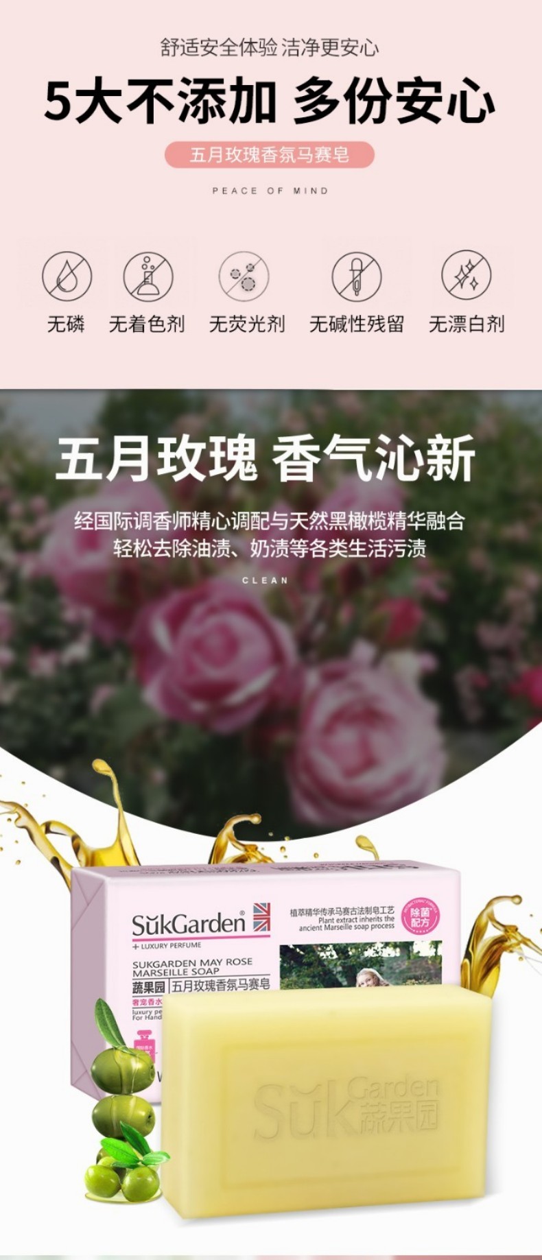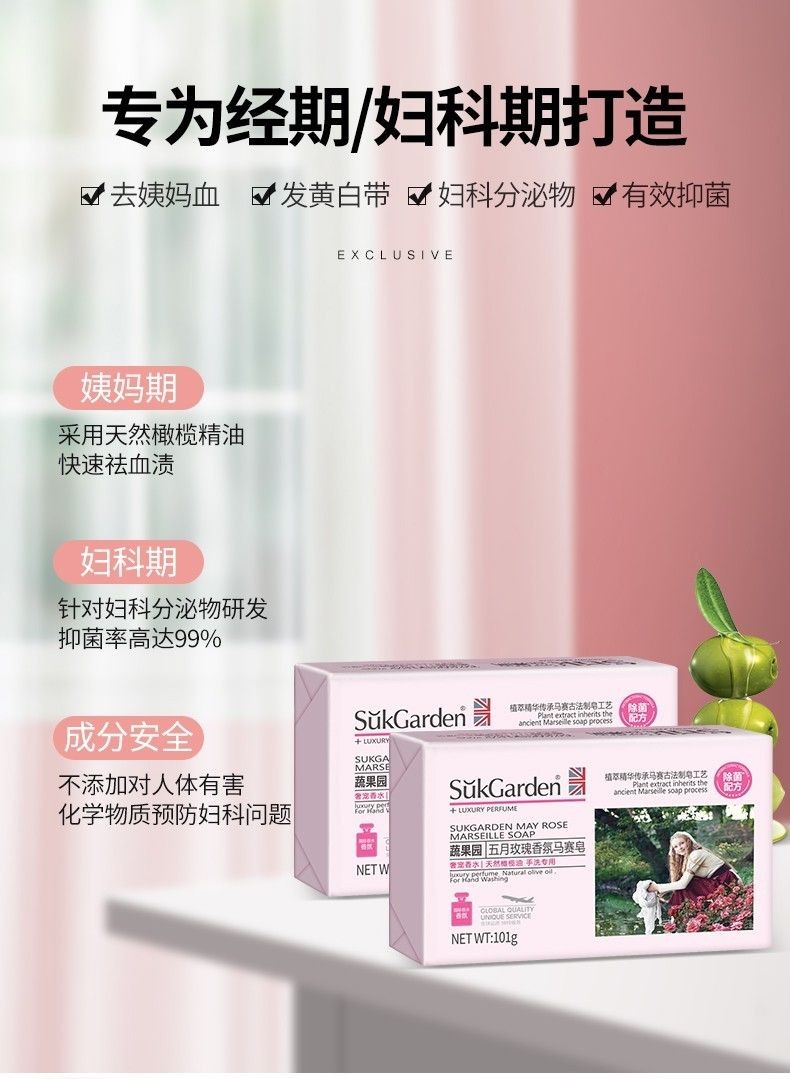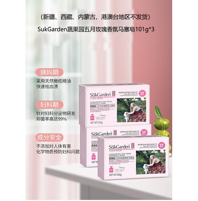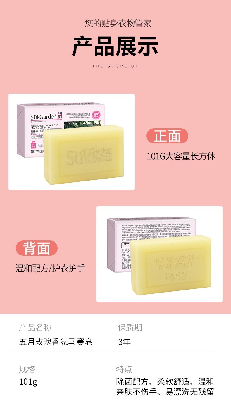 商品名称:(巨邦佑)R+蔬果园洗衣皂内衣皂玫瑰香马赛皂101g*3块 洗内衣裤抑菌除菌男女通用