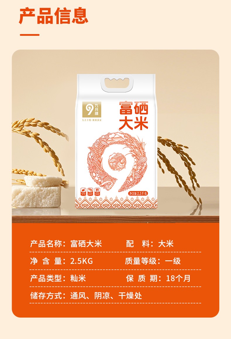 商品名称:(世星阳光)九月穰 富硒大米2.5kg/5kg 真空包装 江汉平原产大米长粒籼米 米香自然口感软糯