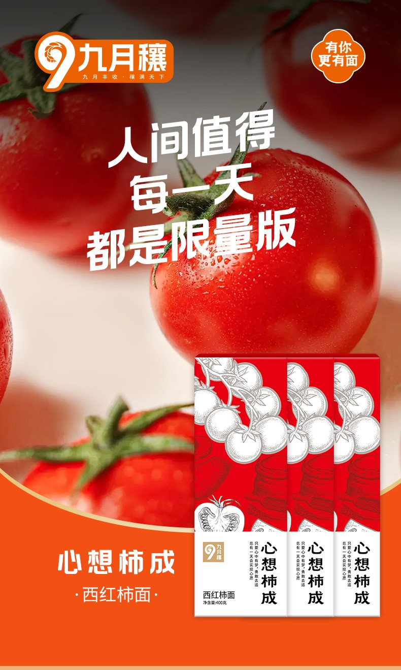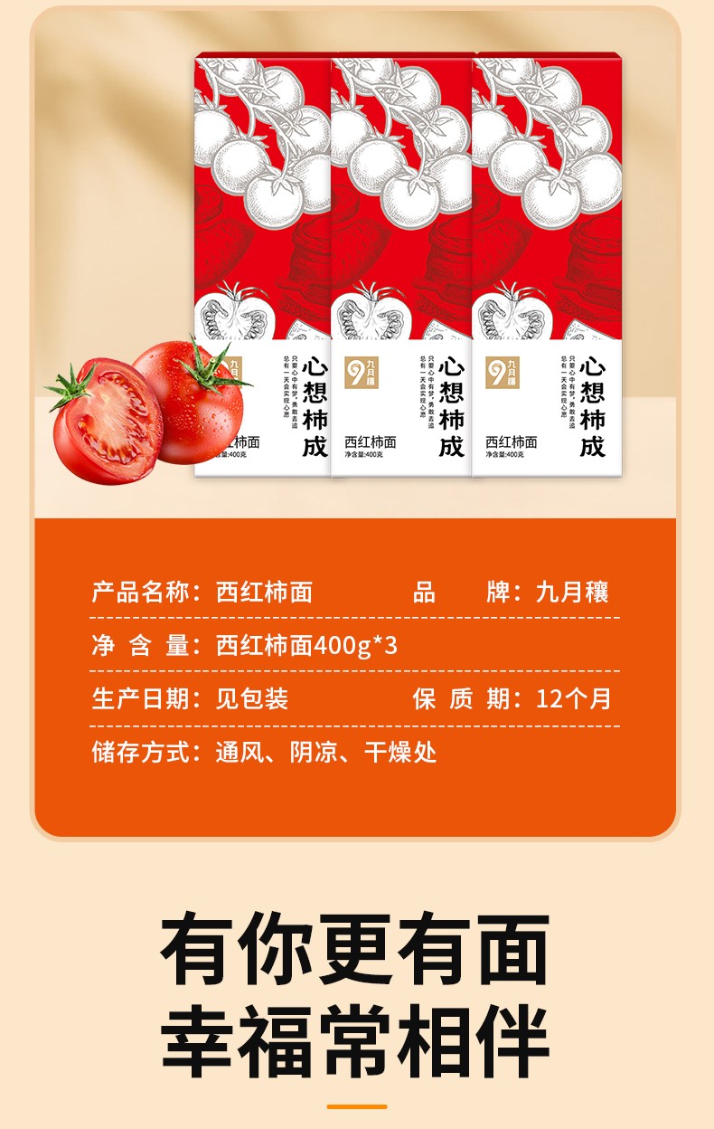 商品名称:(世星阳光)九月穰 心想柿成·西红柿面400g*3 蔬菜面条 细面