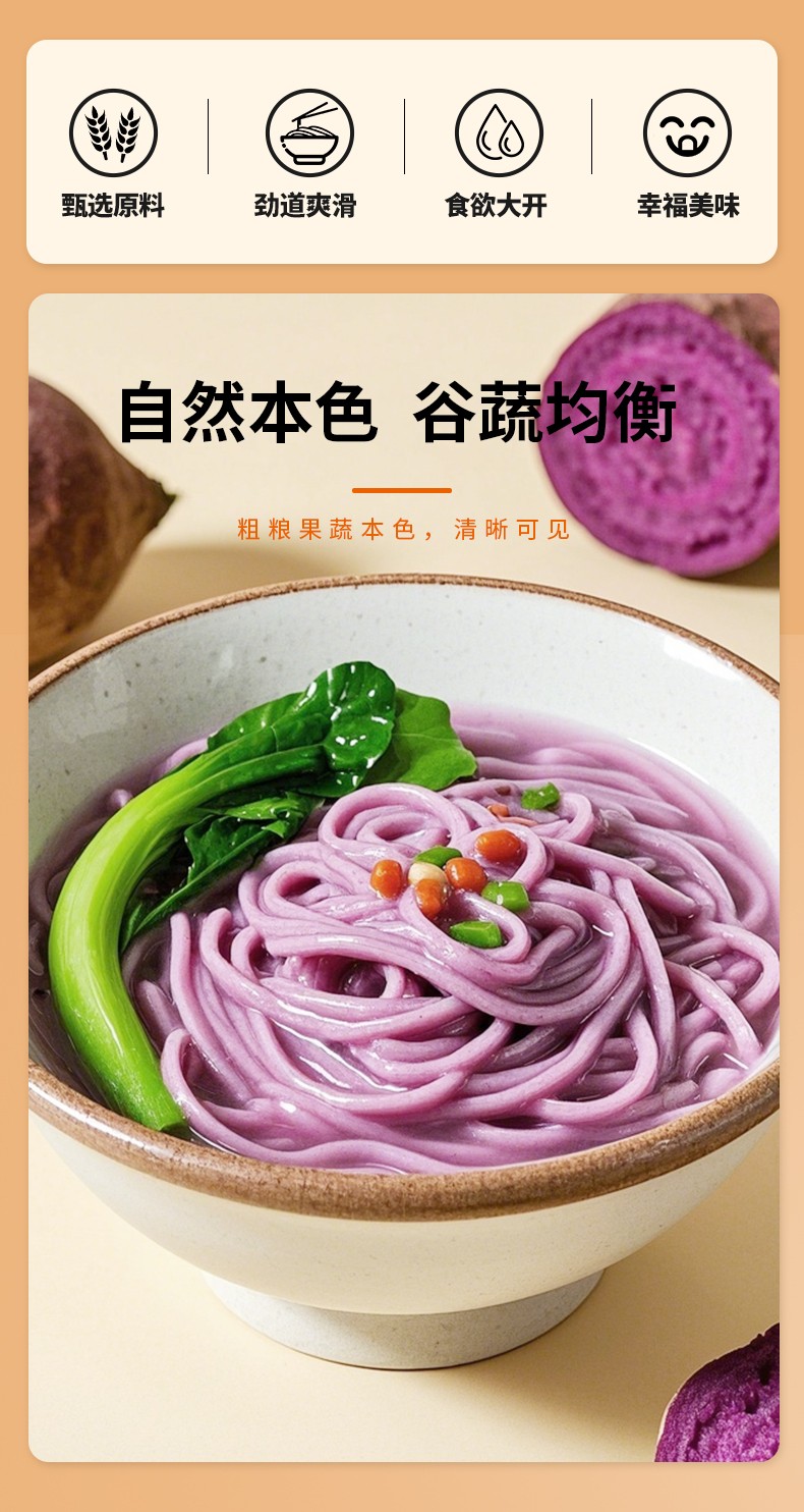 (世星阳光)九月穰 薯你最棒·紫薯面400g*3 劲道爽口 细面条