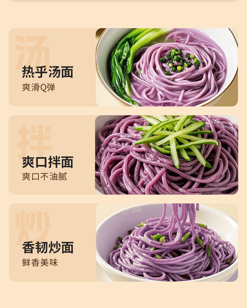 商品名称:(世星阳光)九月穰 薯你最棒·紫薯面400g*3 劲道爽口 细面条
