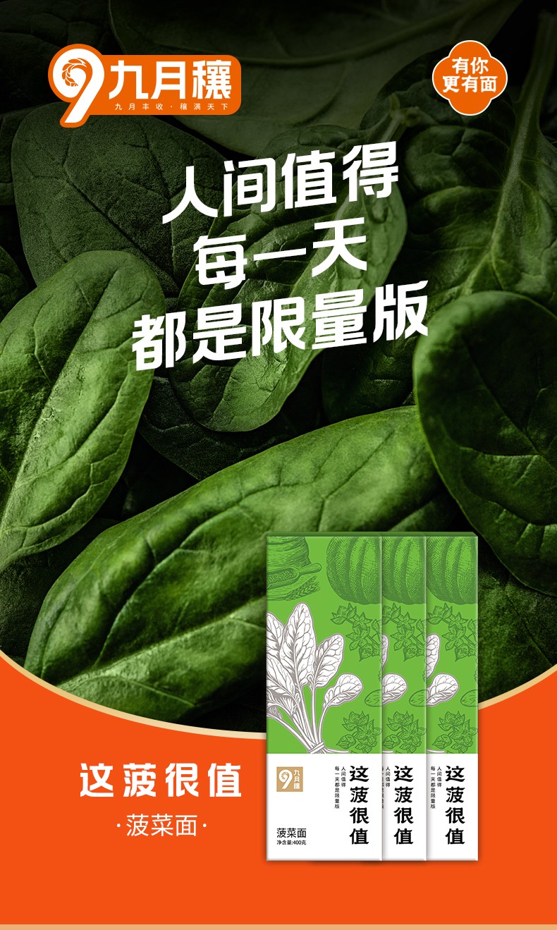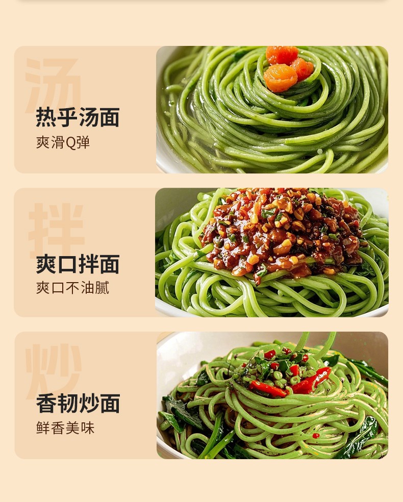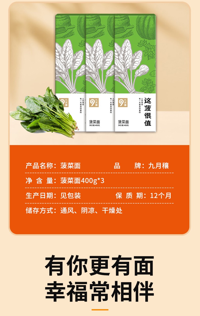 商品名称:(世星阳光)九月穰 这菠很值·菠菜面400g*3 蔬菜面条细面