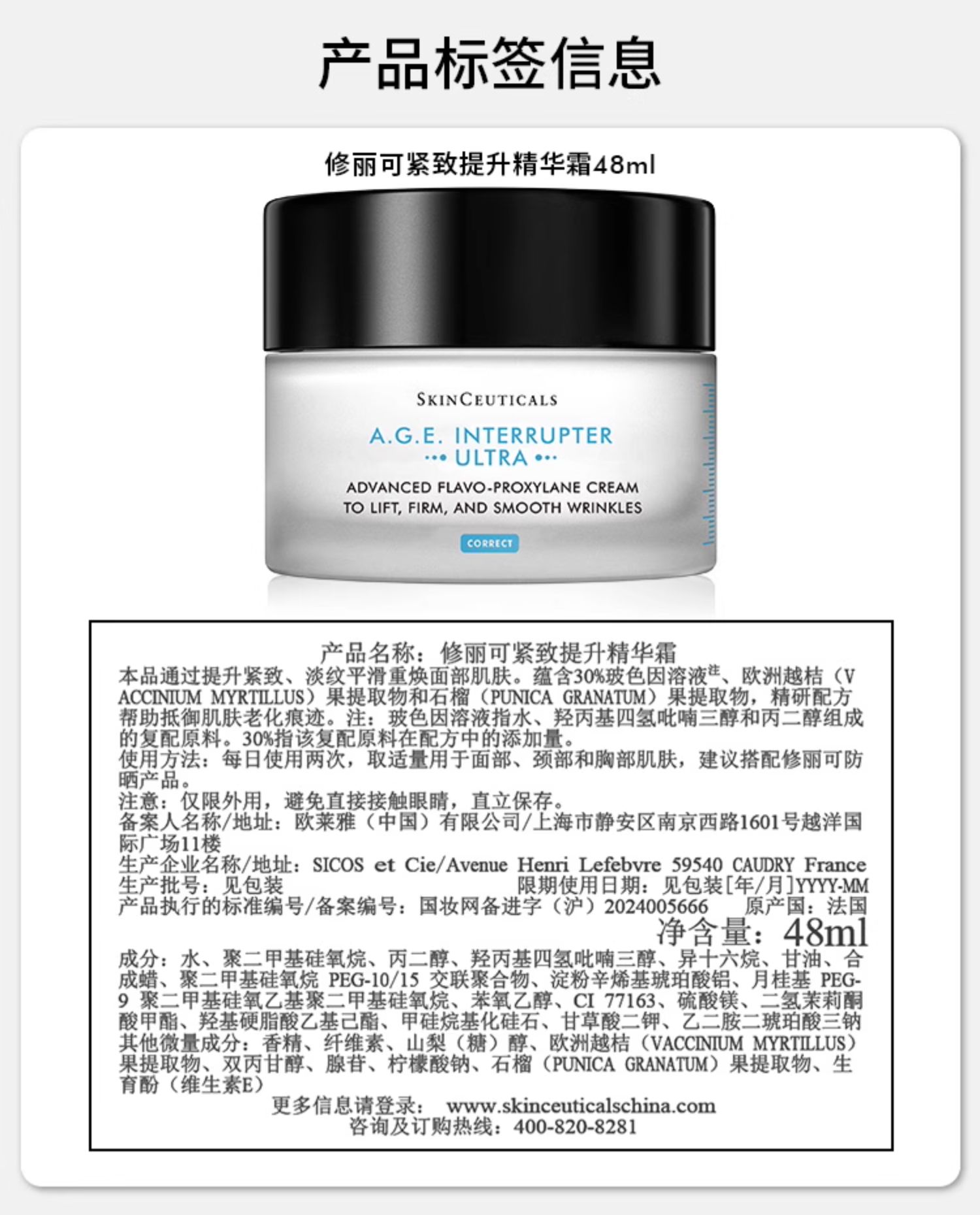 商品名称:(巨邦佑)BJ+修丽可紧致提升精华霜(AGE面霜)48ml 30%玻色因溶液紧致抗皱护肤抗老