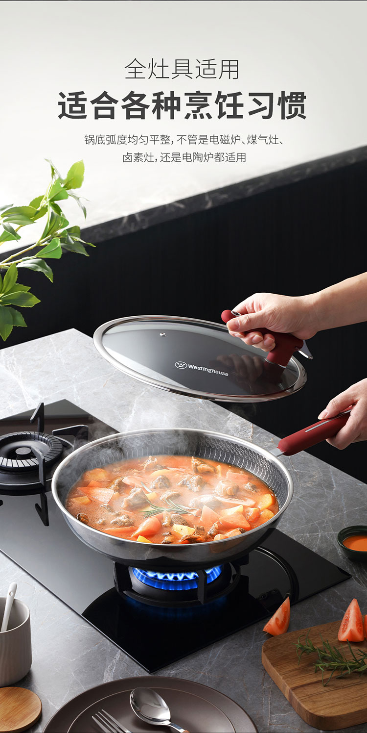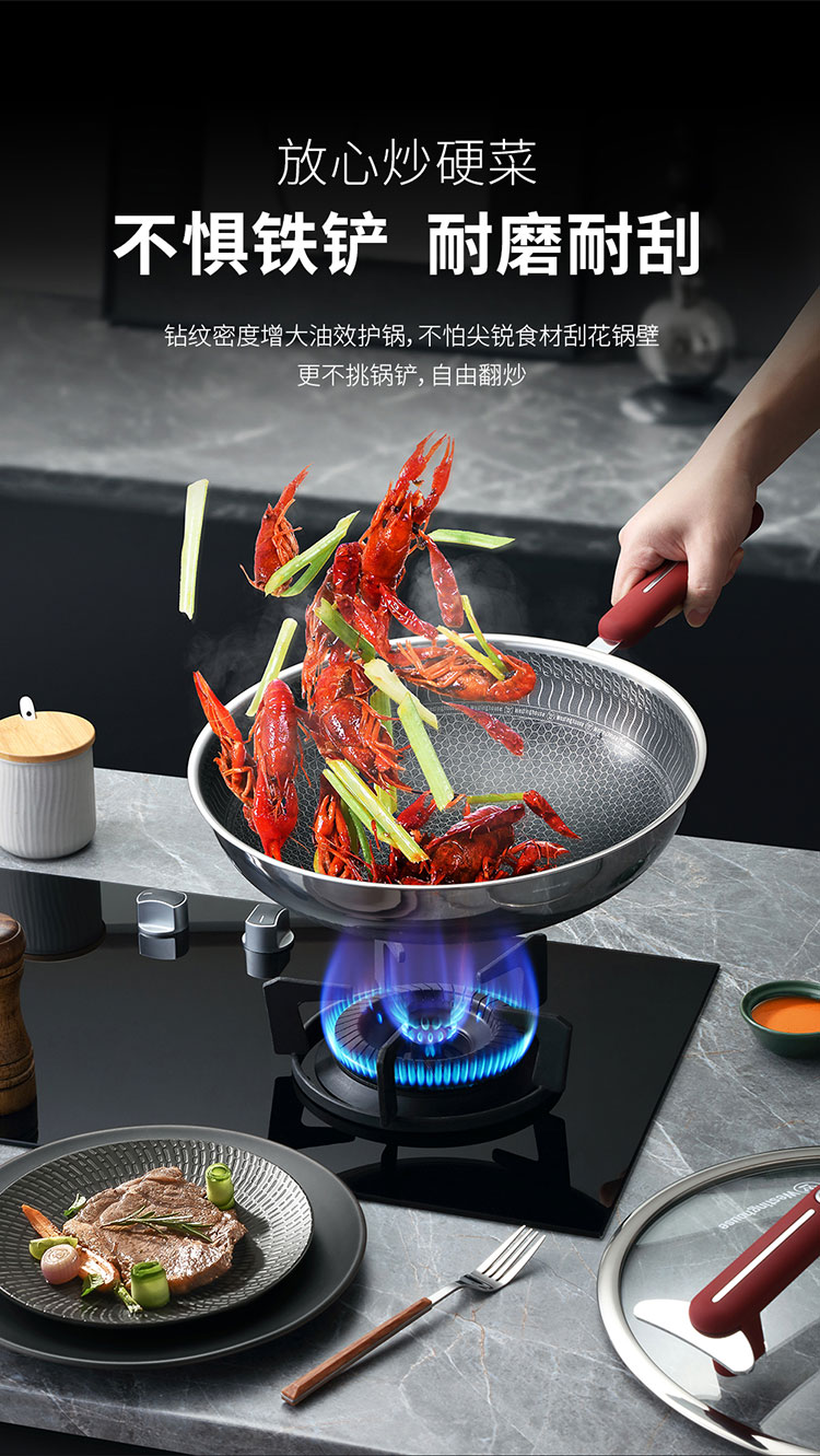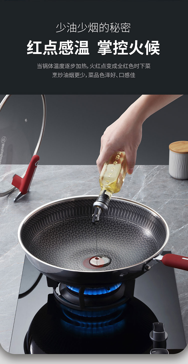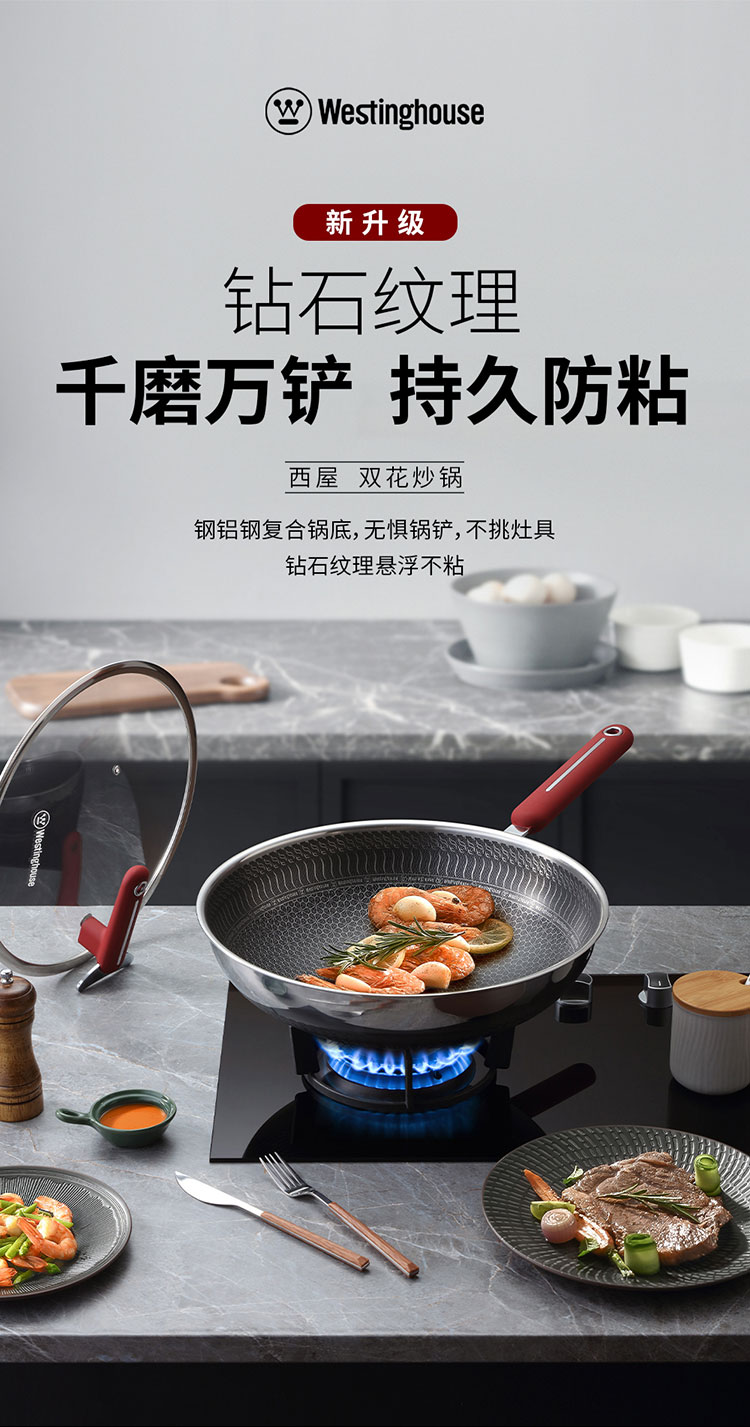 (世星阳光)+WY西屋 双花炒锅 5L 锅口直径 32cm WSCG32A 多点阵式 钻石纹理 煎鱼煎蛋不再粘锅